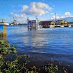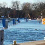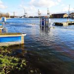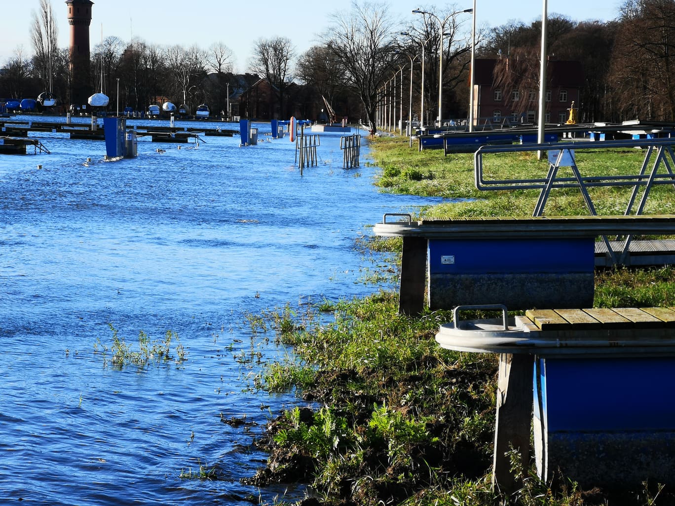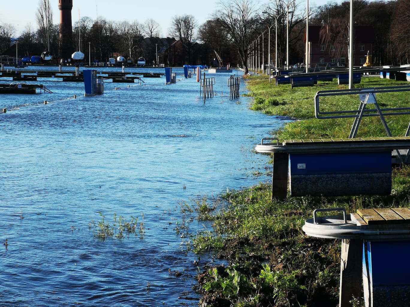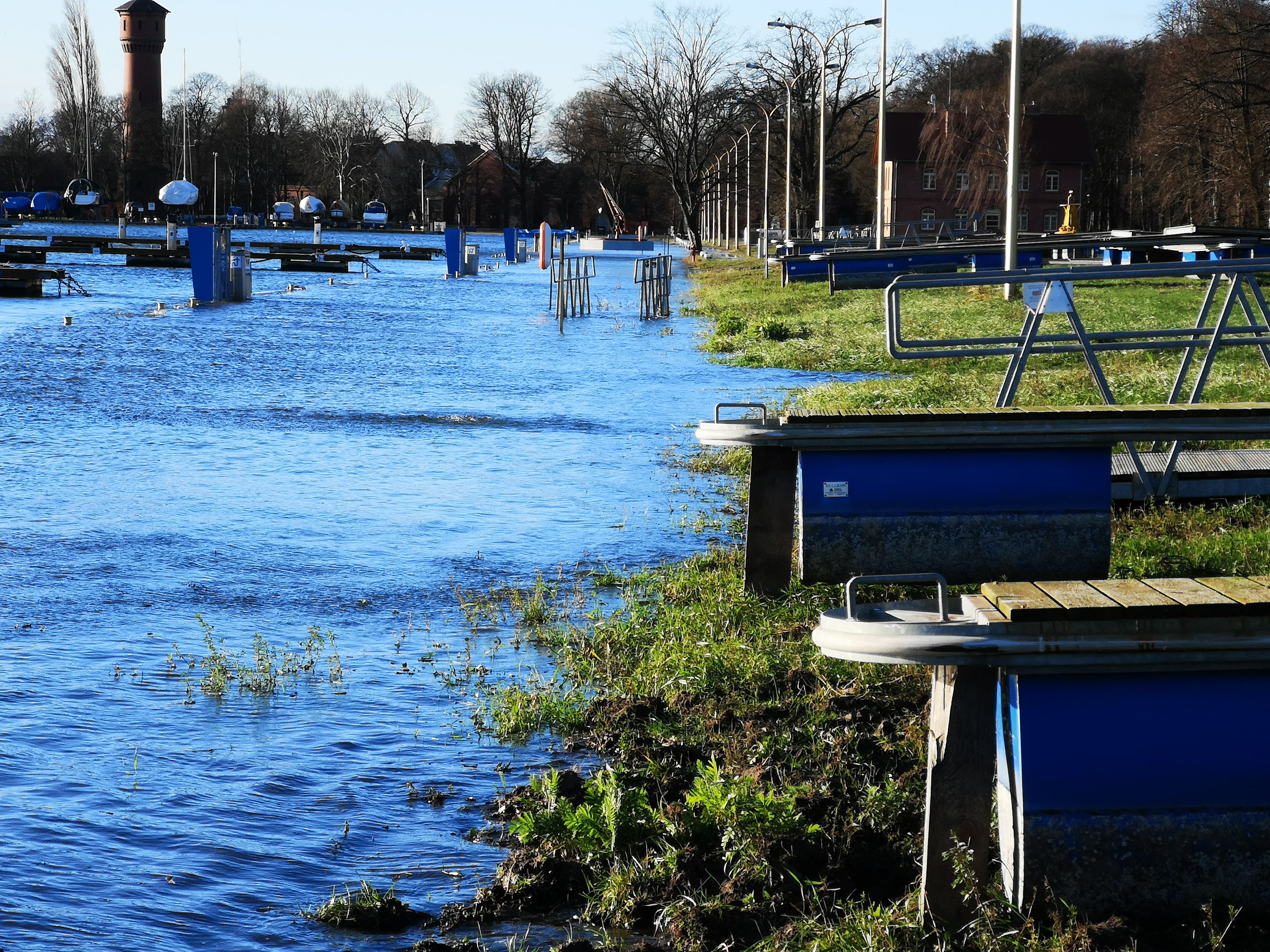 W Basenie Północnym, czyli marinie, poziom wody niemal zrównał się z nadbrzeżem. Fale wylewają się na portowe nabrzeże. Na szczęście nie ma żadnego zagrożenia dla jachtów, bowiem wszystkie o tej porze roku są zimowane na lądzie.