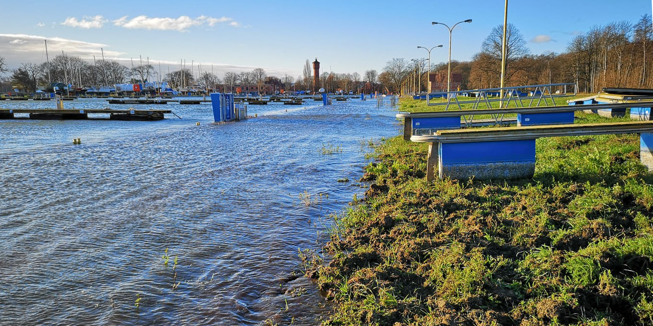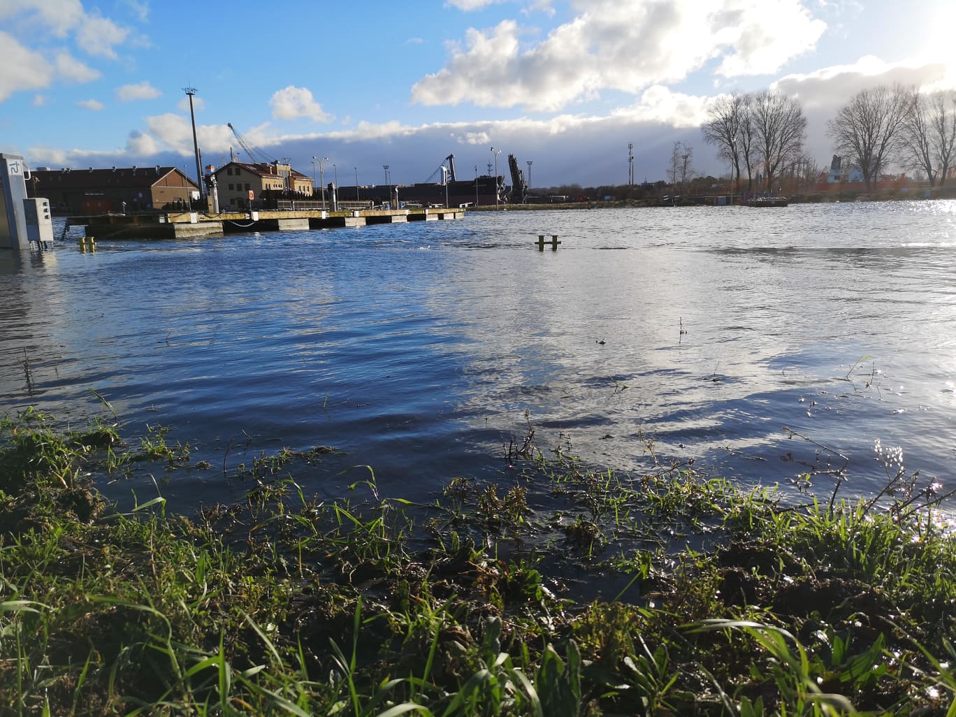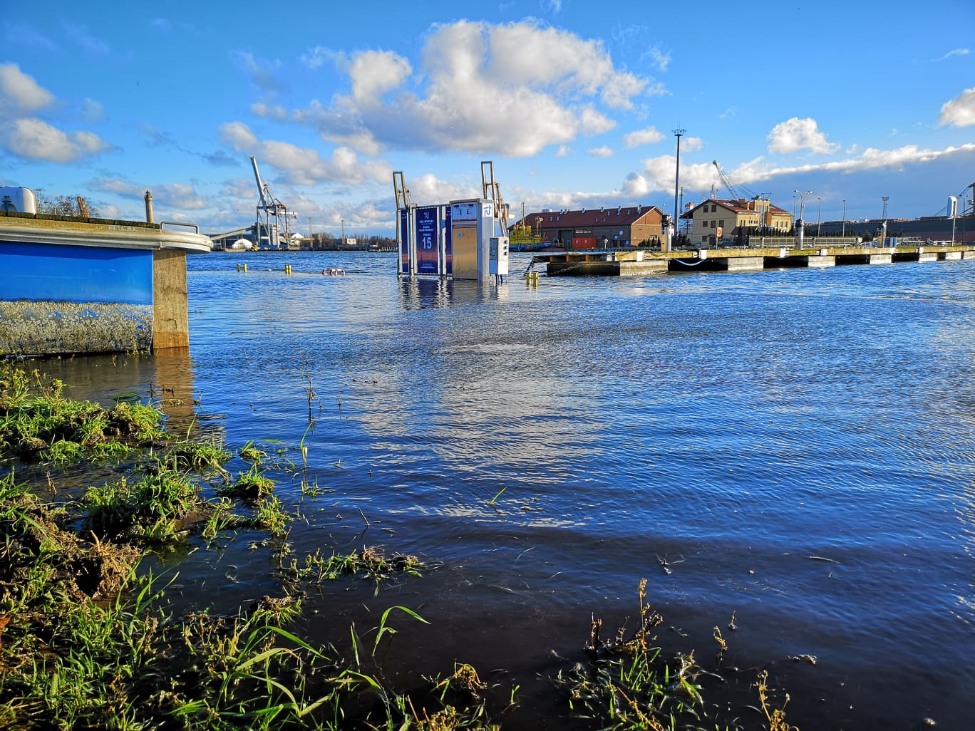 Silny wiatr połączony z wysoką wodą w kanale potowym spowodował zagrożenie w porcie w Świnoujściu.
