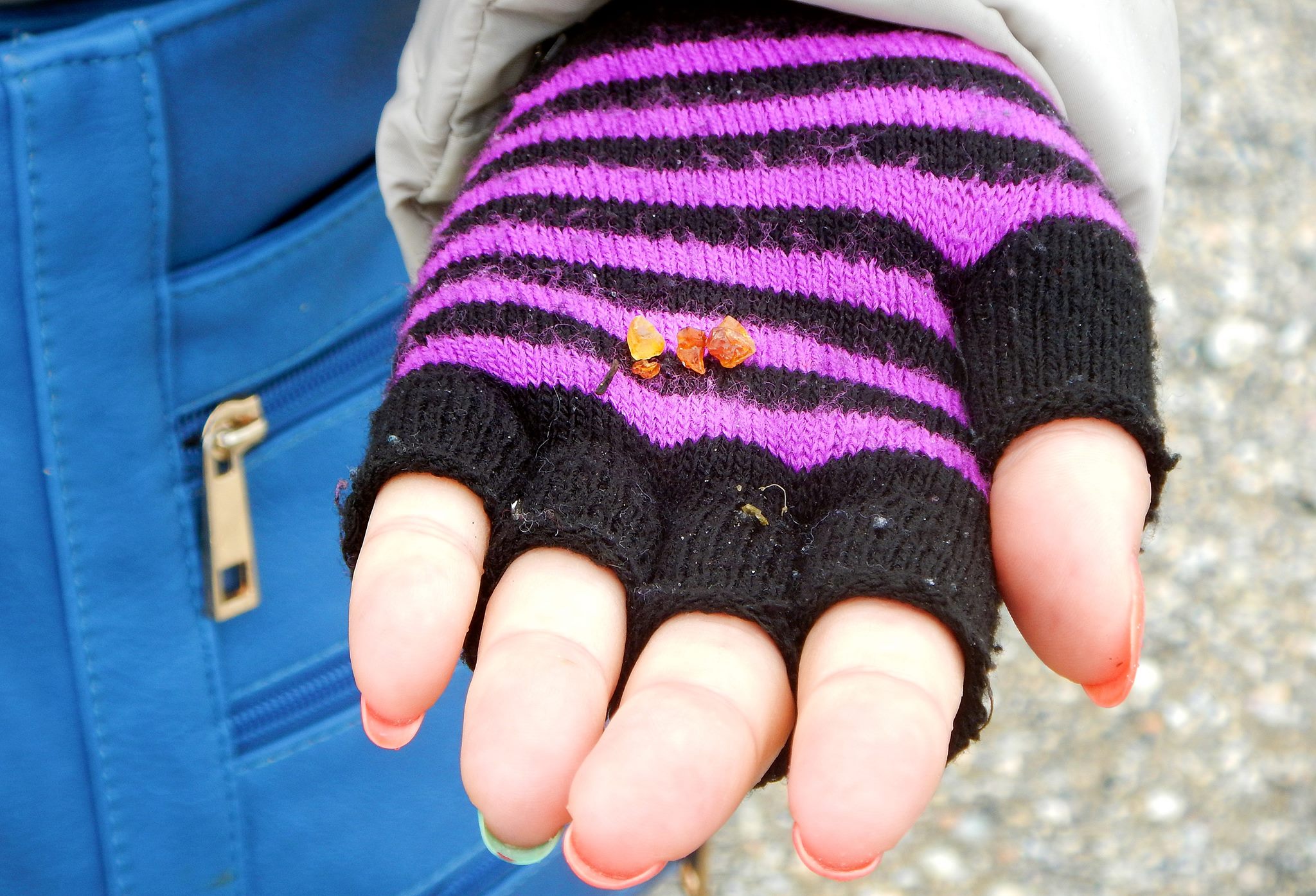 Wczorajszy sztorm pozostawił na plaży pamiątki – setki małych brązowych drobinek. Na poszukiwania ruszyły dziesiątki spacerowiczów. Korzystają z patyków, łopatek, inni używają sitek. Nie wszystko co żółte i przezroczyste jest jantarem.
