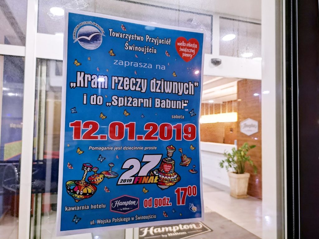 Od wielu lat Towarzystwo Przyjaciół Świnoujścia włącza się w orkiestrowe granie. Podobnie jak w latach poprzednich także tym razem zorganizował imprezę „Kram rzeczy dziwnych”. W gościnnych progach hoteluHampton by Hilton można było wylicytować przeróżne przedmioty – czasem dziwne – ozdobne i użyteczne, ale też rejsy, masaże, zabiegi zdrowotne itp.