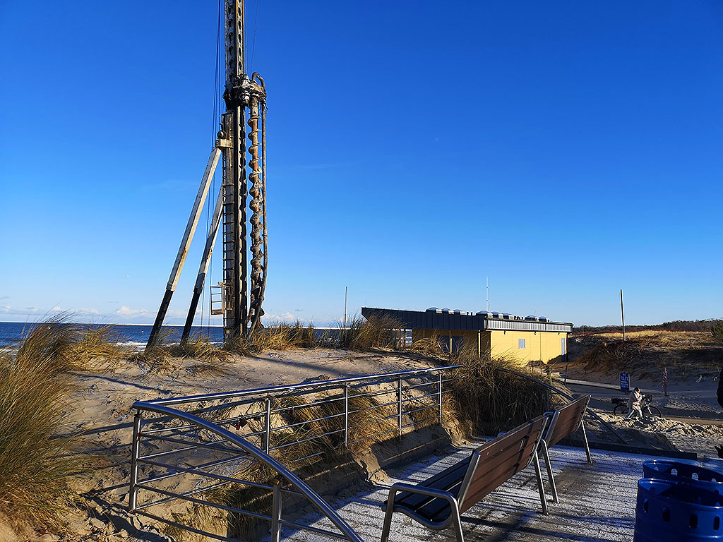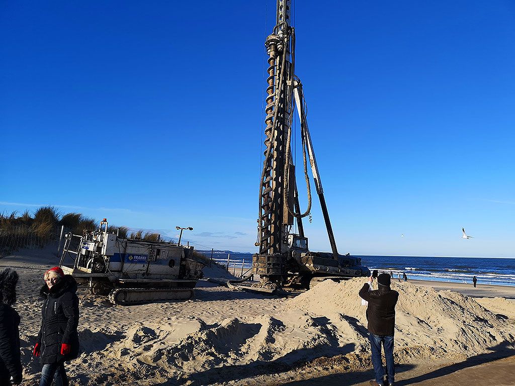 – Podłoże będzie wzmocnione palami, na których wybudowany zostanie solidny, wytrzymały wjazd na plażę. W ramach obecnej inwestycji powstają dwa takie wjazdy. Jeden właśnie na przedłużeniu ul. Powstańców Śląskich, drugi na wysokości ul. Małachowskiego.