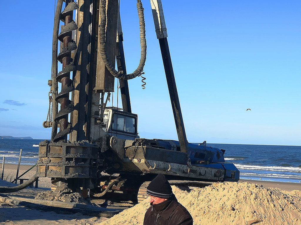 – Podłoże będzie wzmocnione palami, na których wybudowany zostanie solidny, wytrzymały wjazd na plażę. W ramach obecnej inwestycji powstają dwa takie wjazdy. Jeden właśnie na przedłużeniu ul. Powstańców Śląskich, drugi na wysokości ul. Małachowskiego.