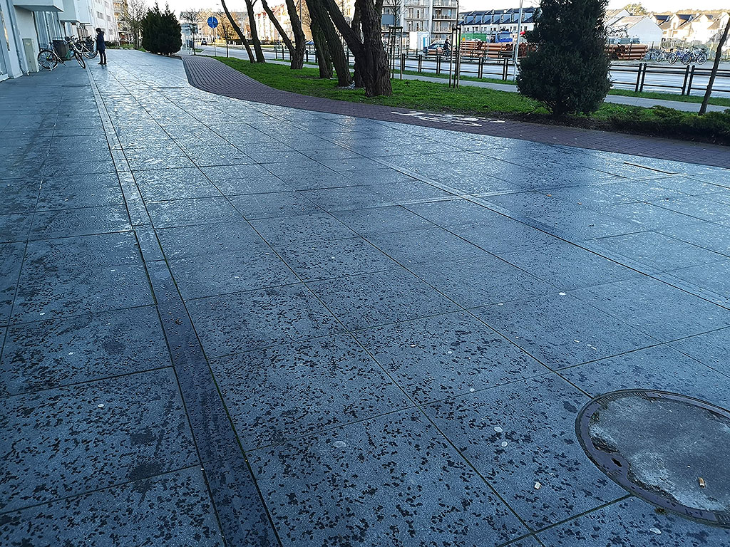Ujemna temperatura spowodowała oblodzenie ulic i chodników. Jednym z takich miejsc był rano chodnik przy ulicy Wojska polskiego oraz 11 Listopada. Krople deszczu zamarzły na kamiennych płytkach i spowodowały, że było bardzo ślisko.