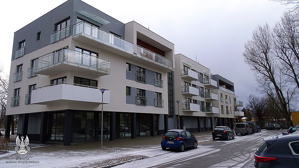 W budynku znajdują się również, zgodnie z zapisami miejscowego planu zagospodarowania przestrzennego, dwa lokale użytkowe o łącznej powierzchni: 200,18m2. Cały budynek jest ogrzewany      z sieci miejskiej. Przed blokiem powstał parking dla lokatorów, plac zabaw, siłownia plenerowa i wiata śmietnikowa. Każdy z mieszkańców otrzyma również komórkę lokatorską.