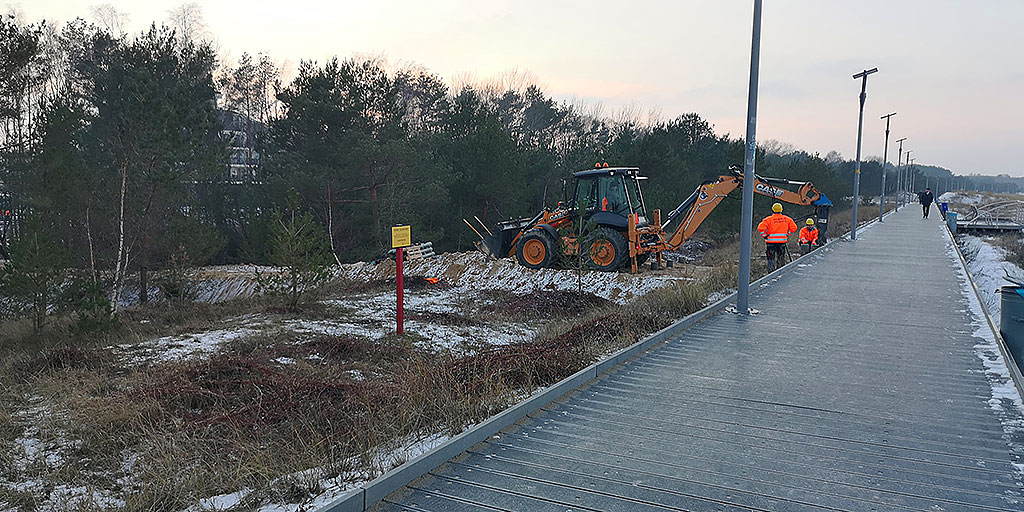 Na wysokości hotelu Ewerdin trwa właśnie budowa nowego wejścia na plażę. Podłoże jest wzmacniane palami, na których wybudowane zostanie wejście na plażę.