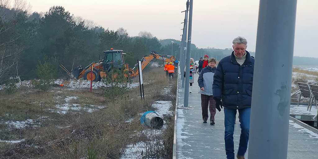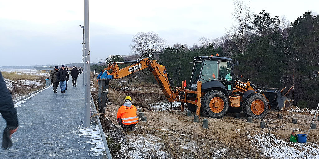Na wysokości hotelu Ewerdin trwa właśnie budowa nowego wejścia na plażę. Podłoże jest wzmacniane palami, na których wybudowane zostanie wejście na plażę.