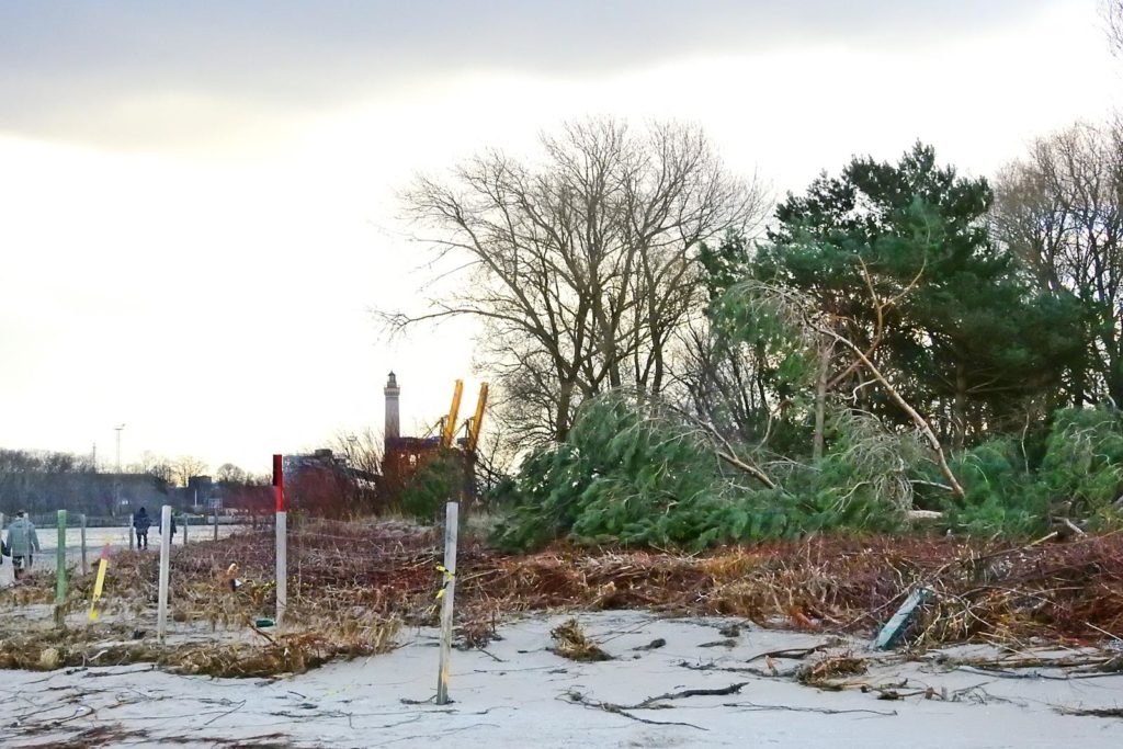 Na zlecenie Urzędu Morskiego w Szczecinie  wycinane są drzewa przy falochronie zachodnim. Zasłaniają ważny element nawigacyjny i zagrażają bezpieczeństwu żeglugi – mówią przedstawiciele UMS.