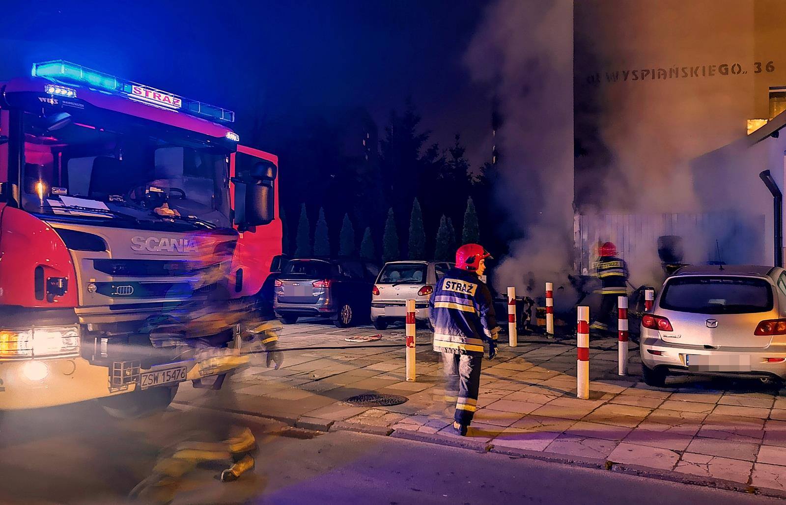 We wtorek około godziny 19.00 dwa zastępy strażaków gasiły pożar śmieci i wystawionych przy budynku mebli na ul. Wyspiańskiego 36. Pożar szybko ugaszono, nadpaleniu uległy kamery monitoringu i ściana budynku. Ulica na czas akcji była zamknięta.