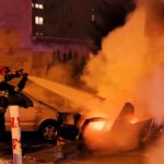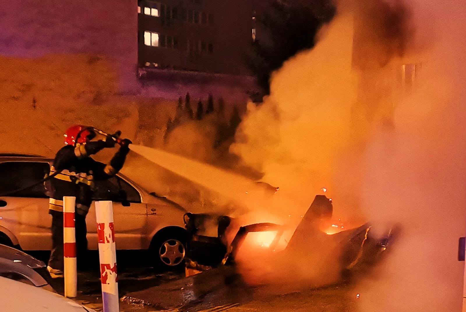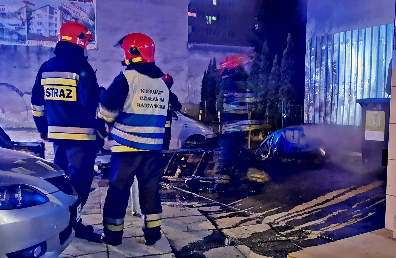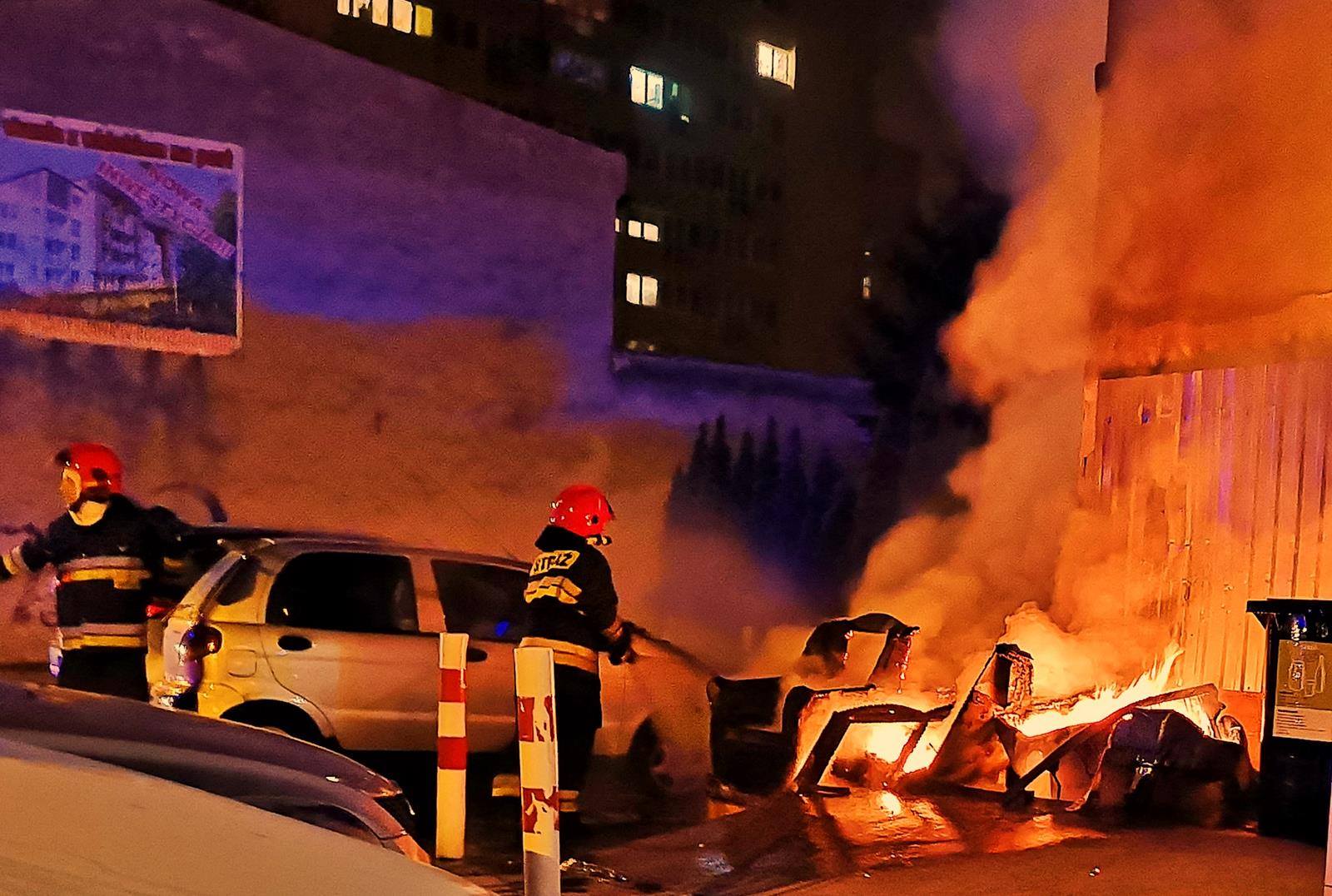 Pożar śmieci przed budynkiem. Nadpalił się jeden samochód