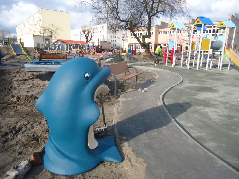 Powstały nowe ścieżki dla dzieci, wydzielono strefy zabaw, zamontowano większość nowych urządzeń. Z dnia na dzień przyprzedszkolny plac zabaw staje się coraz bardziej kolorowy.