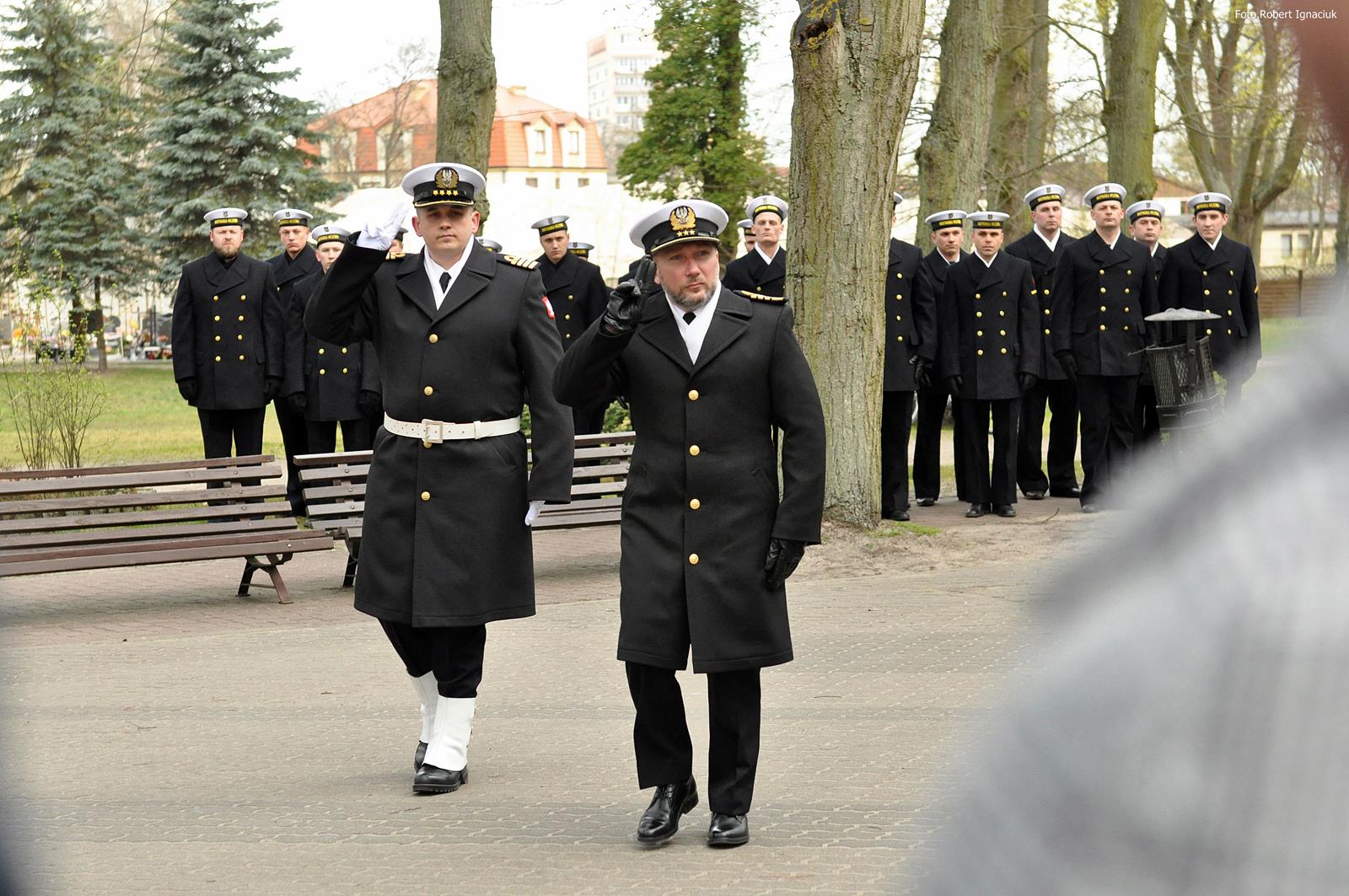 Uroczystość przekazania obowiązków rozpoczęła się od parady burtowej. Oficerowie zdający i obejmujący obowiązki, w towarzystwie zaproszonych gości, przyjęli z pokładu motorówki hydrograficznej MH-1 paradę burtową okrętów stacjonujących w Porcie Wojennym Świnoujście. Złożono również wiązankę kwiatów pod pomnikiem „Tym, którzy przywrócili Pomorze macierzy”. Na uroczystej zbiórce pododdziałów flotylli, meldunek o zdaniu i przyjęciu obowiązków przyjął Inspektor Marynarki Wojennej wiceadmirał Jarosław Ziemiański.
