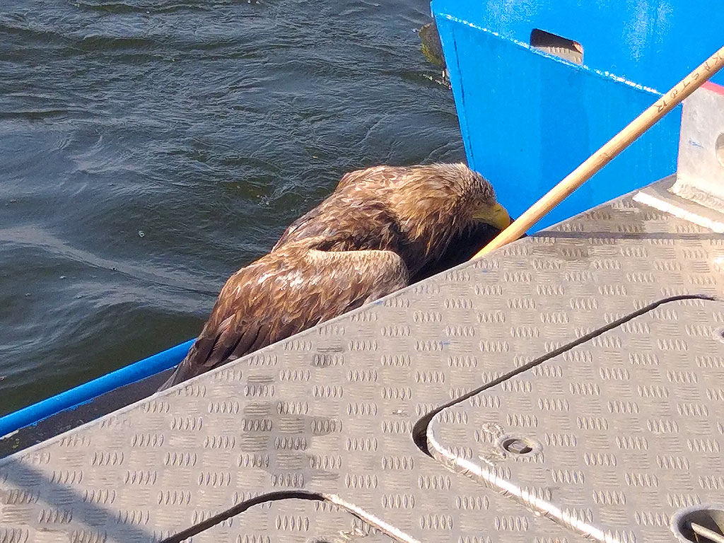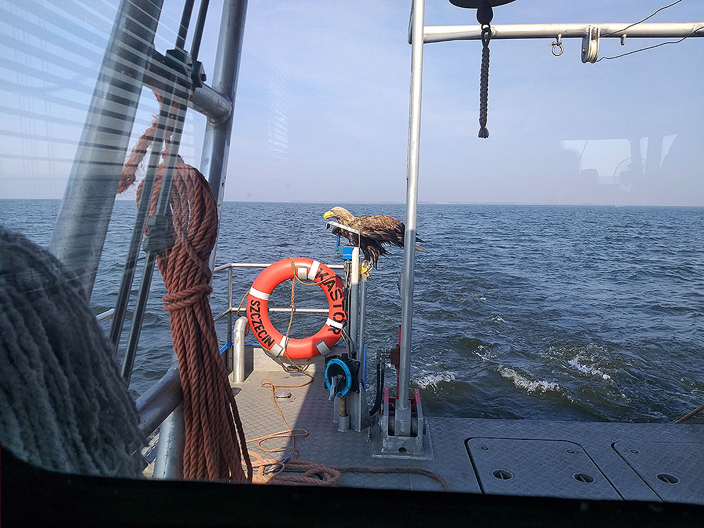 – Podczas prac sondażowych na torze wodnym Świnoujście – Szczecin załoga jednostki „Kastor” zobaczyła wpadającego do wody bielika. Ptak najprawdopodobniej nie byłby w stanie samodzielnie wydostać się z wody, bo był już mokry i ciężki. Nasi pracownicy postanowili spróbować wyciągnąć go z wody. Udało się.  Przez dłuższą chwilę bielik towarzyszył załodze susząc się na rufie – mówi Ewa Wieczorek z Urzędu Morskiego w Szczecinie.