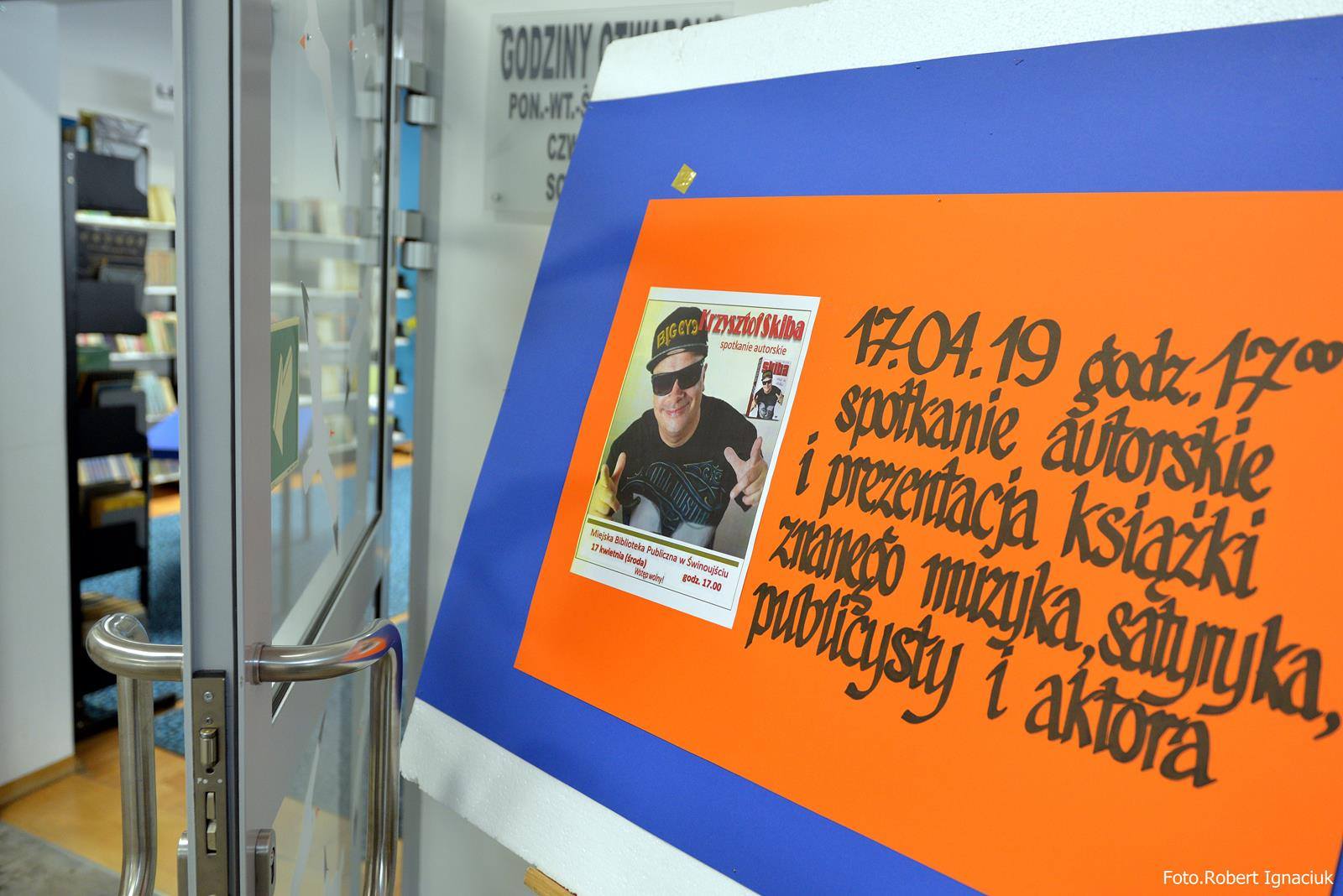 Spotkanie autorskie z udziałem Krzysztofa Skiby: muzyka, satyryka, publicysty, aktora, a także – autora bestsellerowej książki pt.: „Skiba. Ciągle na wolności. Autobiografia łobuza” połączono z prezentacją jego książki.