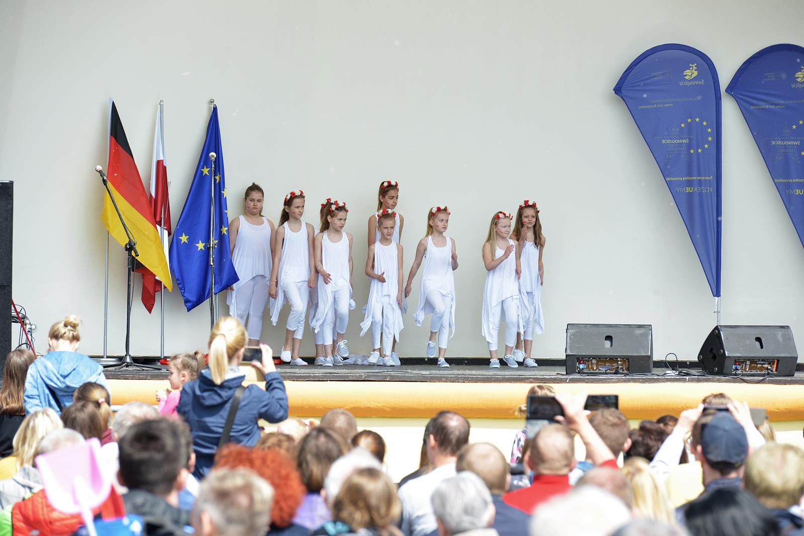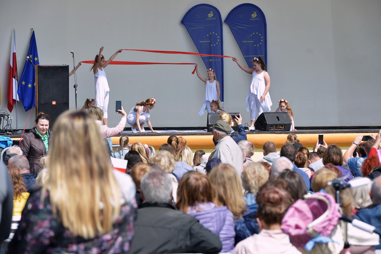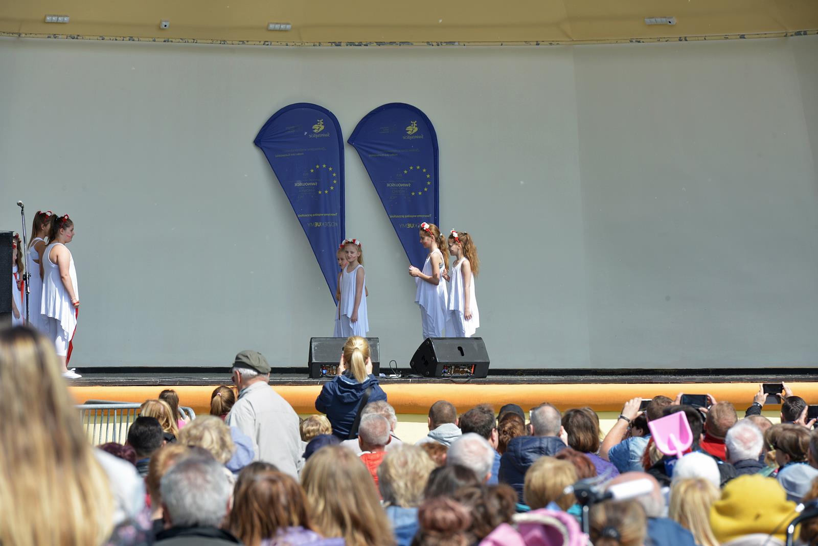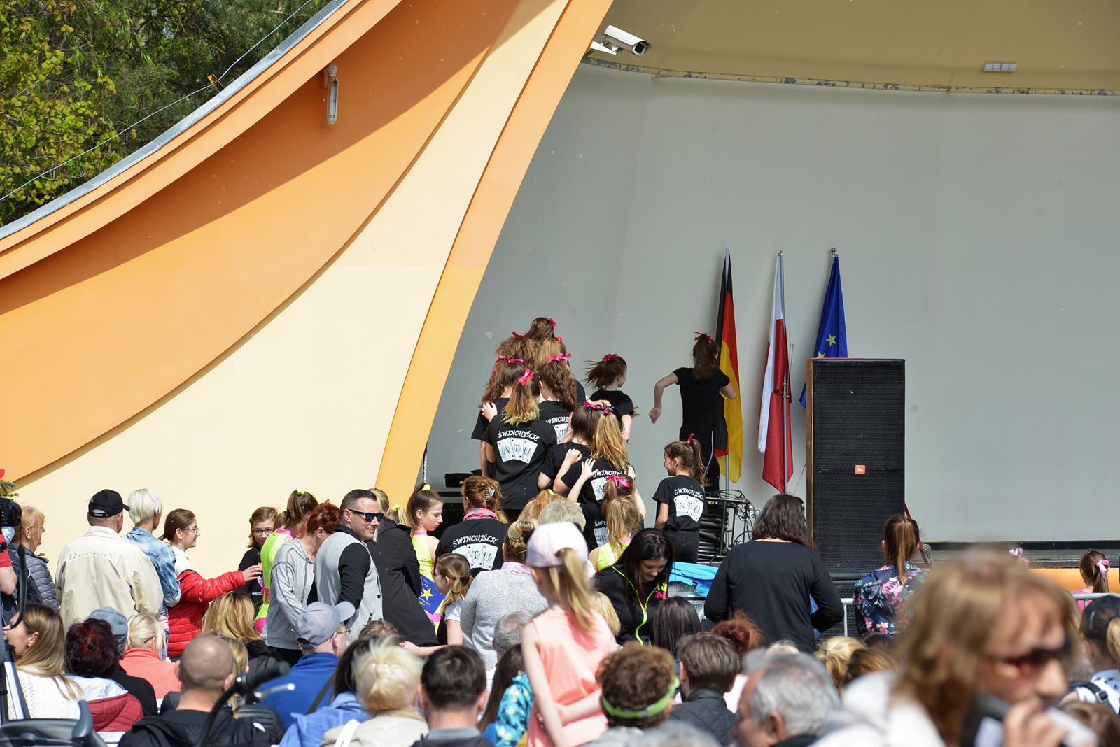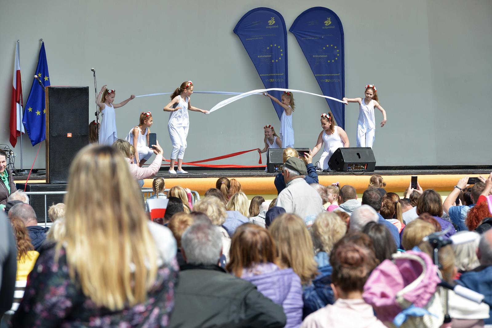 W Świnoujściu w muszli koncertowej, punktualnie o godzinie 12 rozbrzmiał hymn Polski oraz hymn Unii Europejskiej. Na skrzypcach zagrał artysta Marcin Diling. Chwilę później na scenie zaprezentowały się dzieci z pracowni artystycznej Miejskiego Domu Kultury.