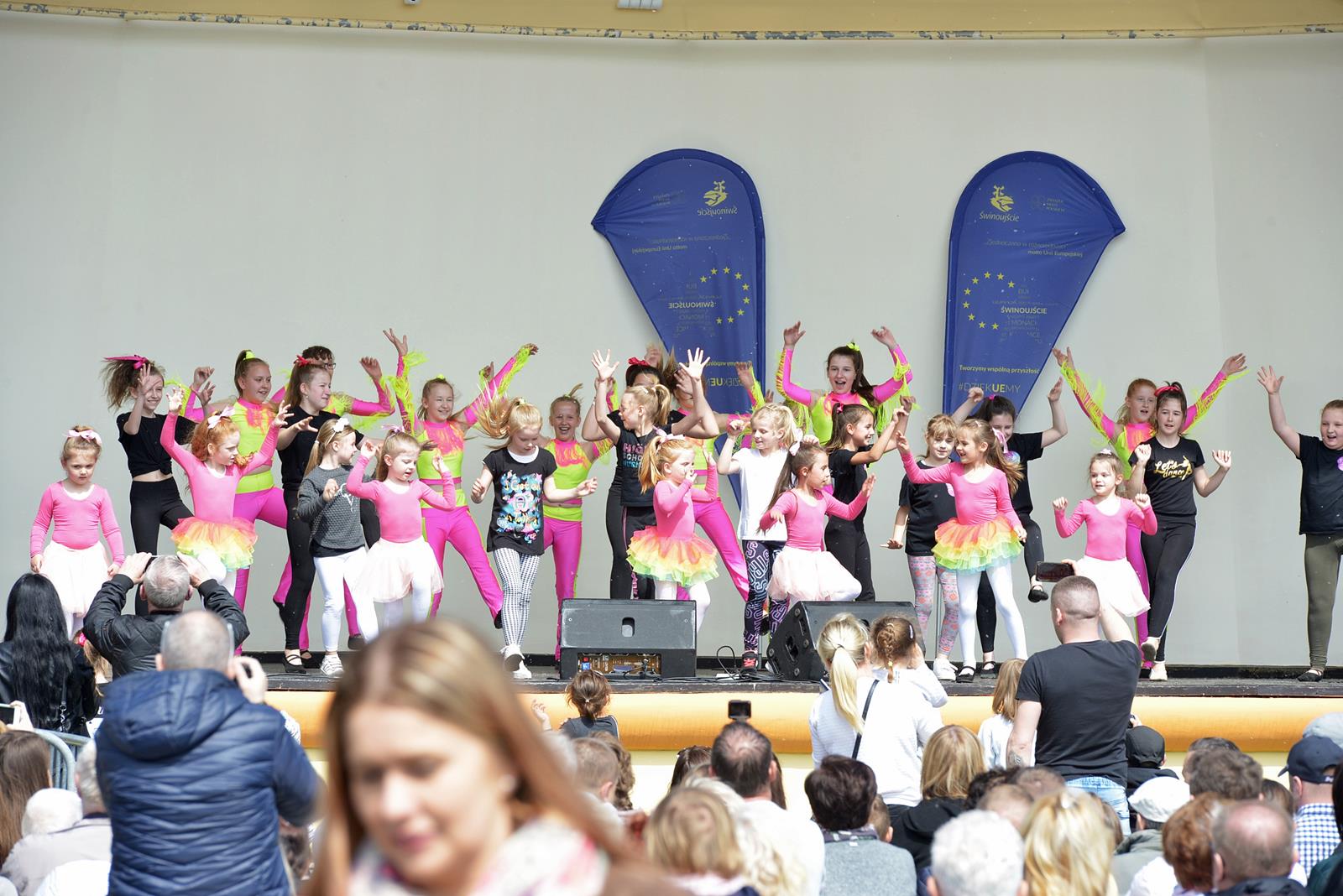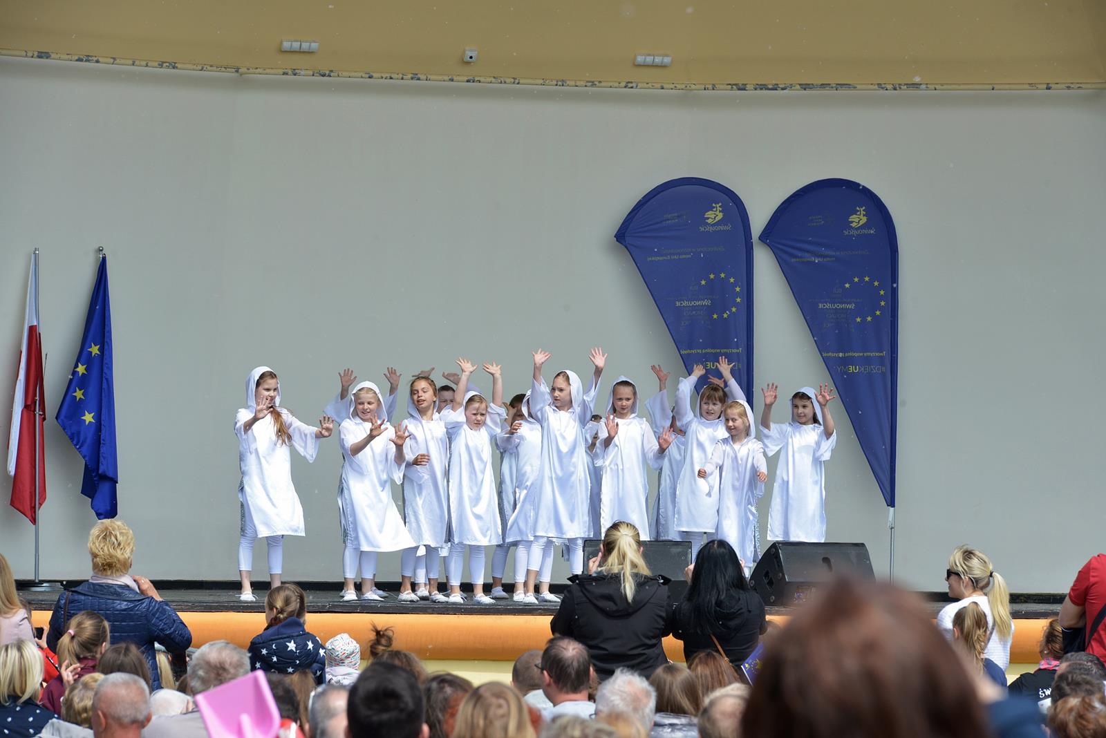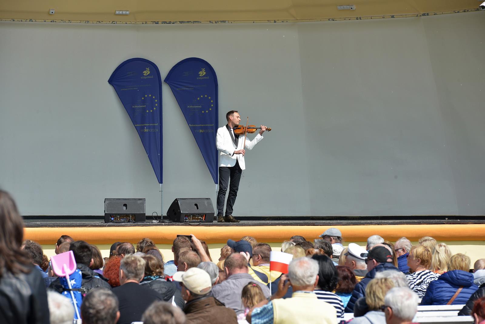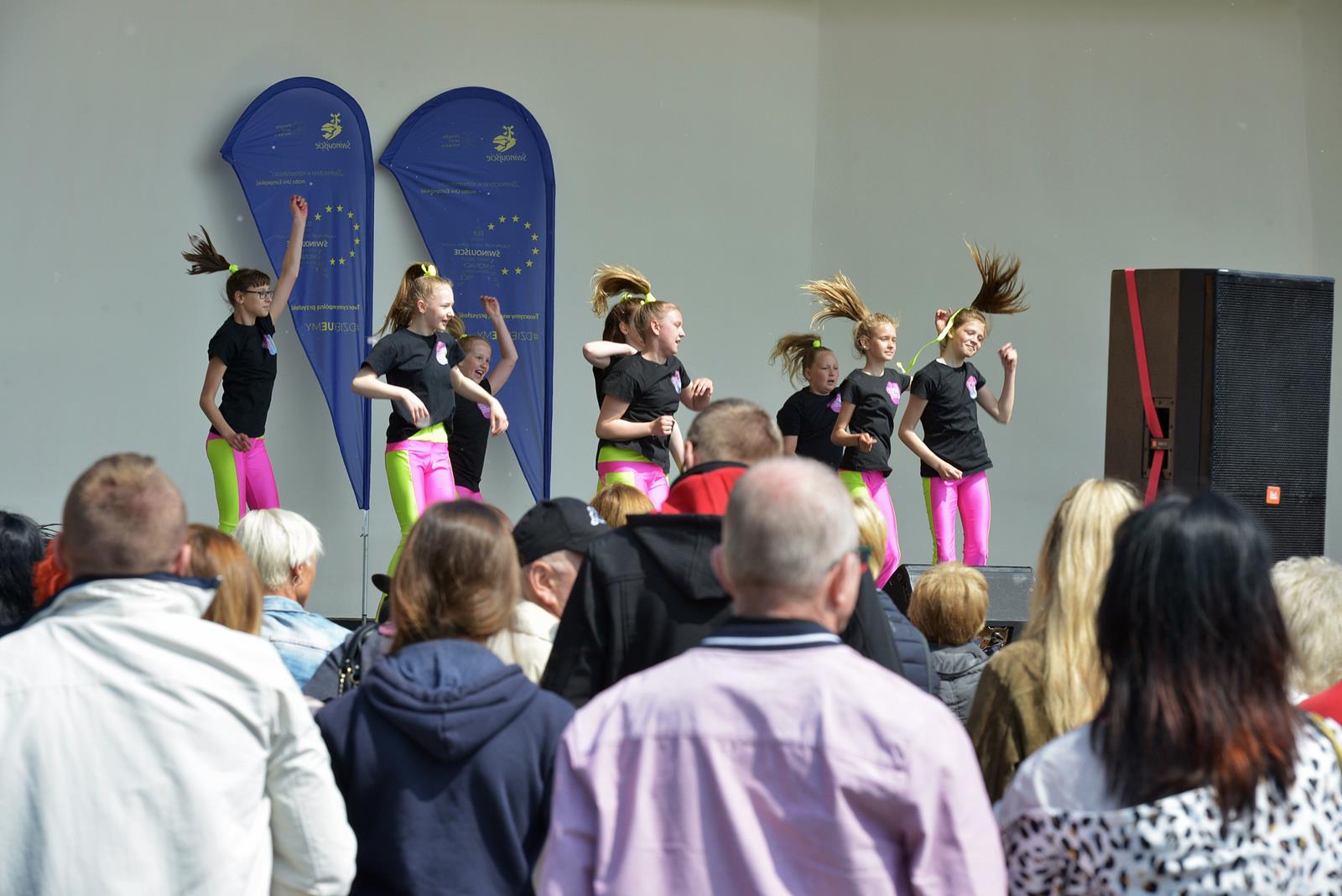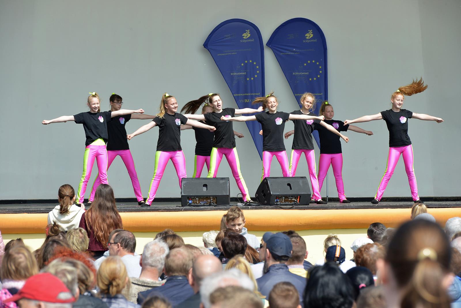 W Świnoujściu w muszli koncertowej, punktualnie o godzinie 12 rozbrzmiał hymn Polski oraz hymn Unii Europejskiej. Na skrzypcach zagrał artysta Marcin Diling. Chwilę później na scenie zaprezentowały się dzieci z pracowni artystycznej Miejskiego Domu Kultury.