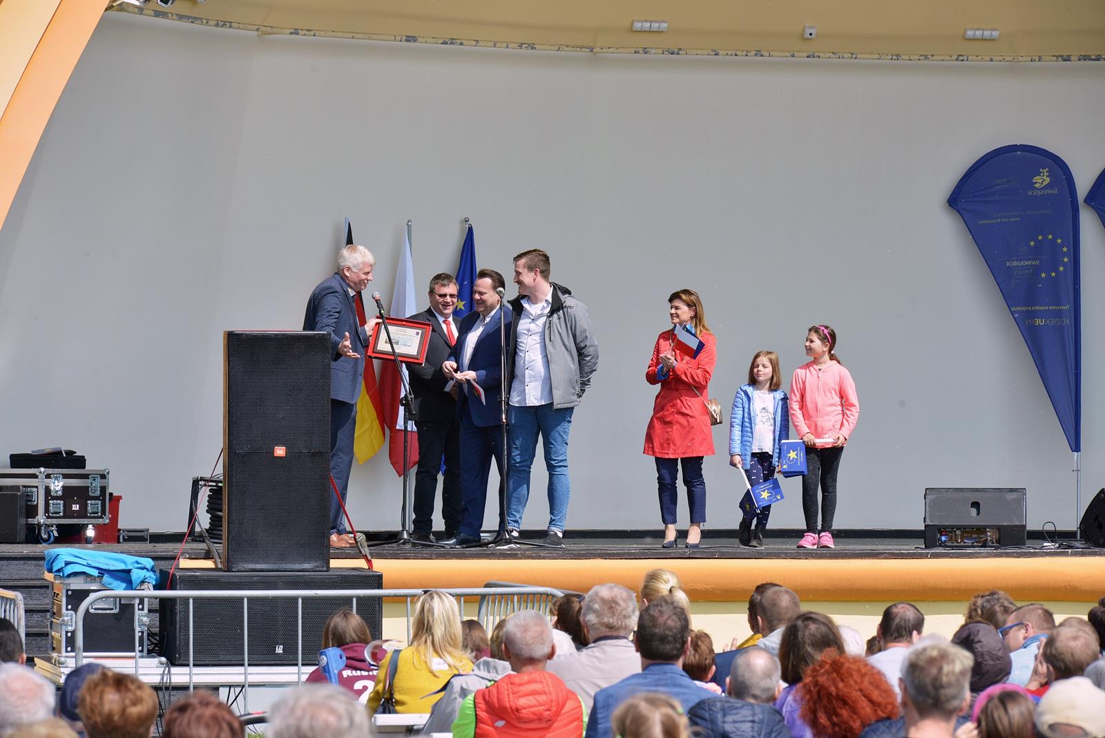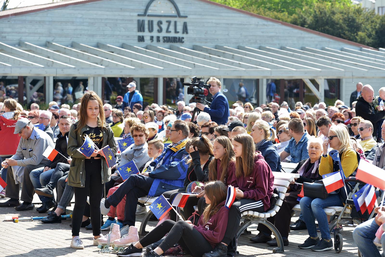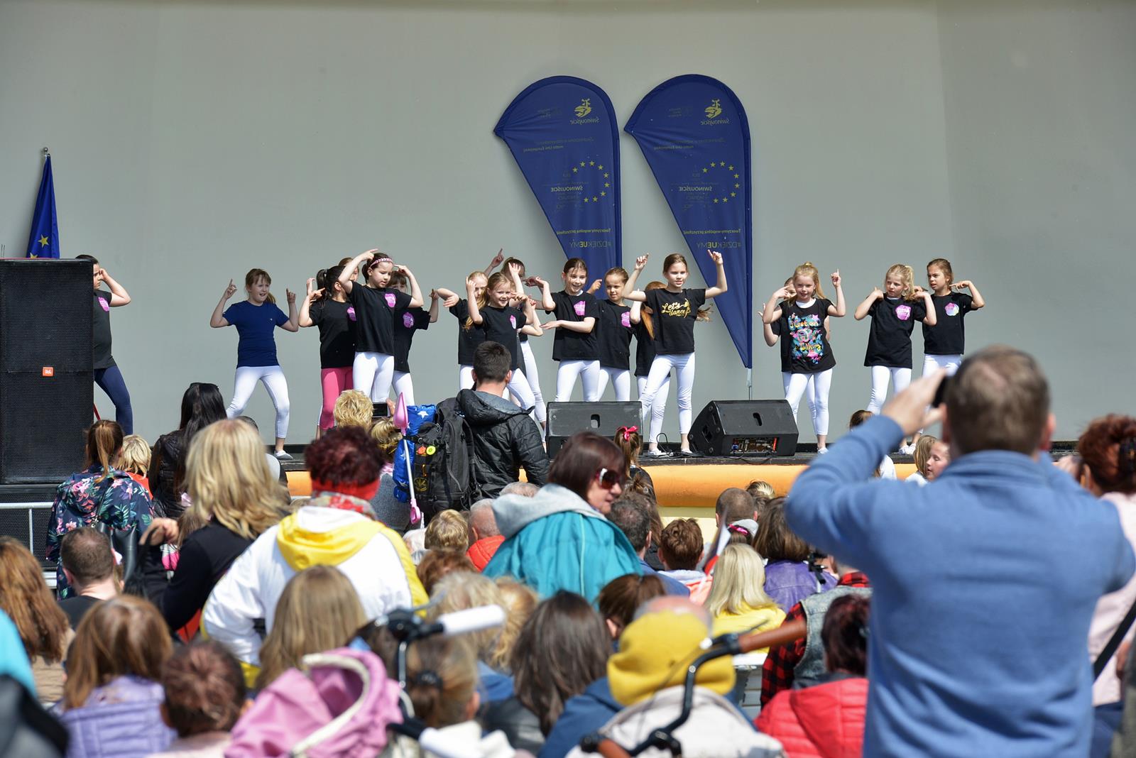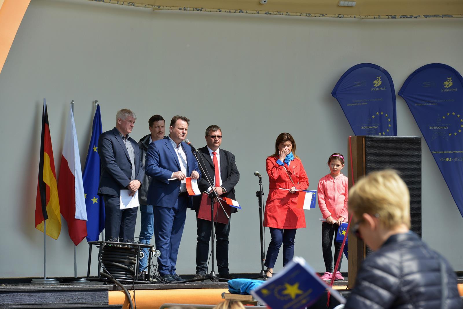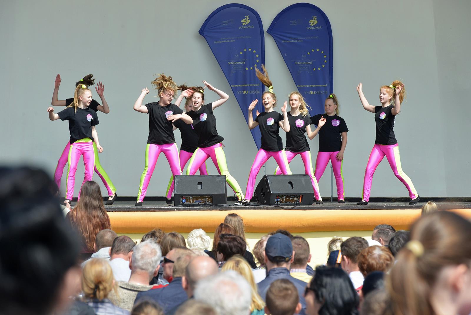 W Świnoujściu w muszli koncertowej, punktualnie o godzinie 12 rozbrzmiał hymn Polski oraz hymn Unii Europejskiej. Na skrzypcach zagrał artysta Marcin Diling. Chwilę później na scenie zaprezentowały się dzieci z pracowni artystycznej Miejskiego Domu Kultury.