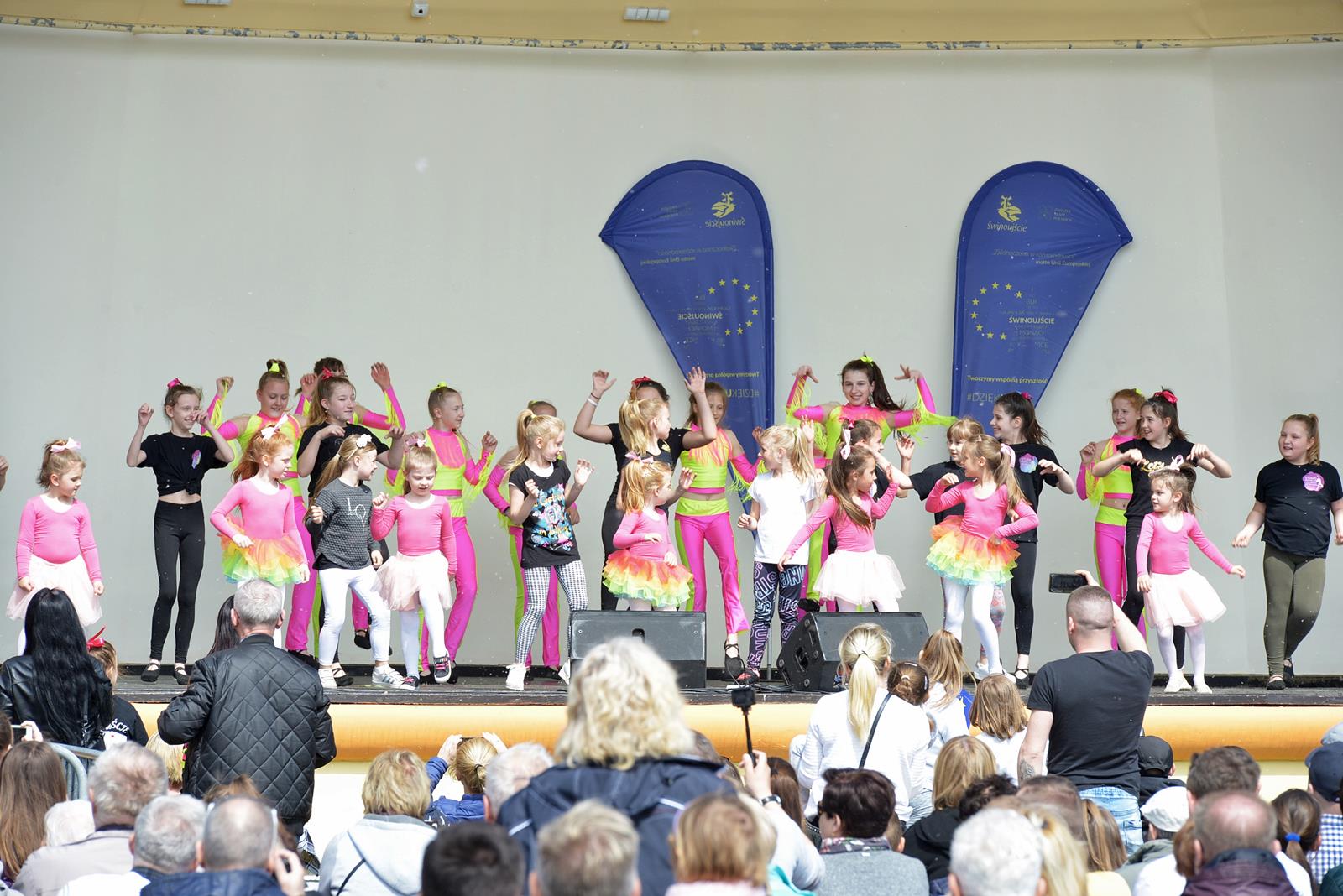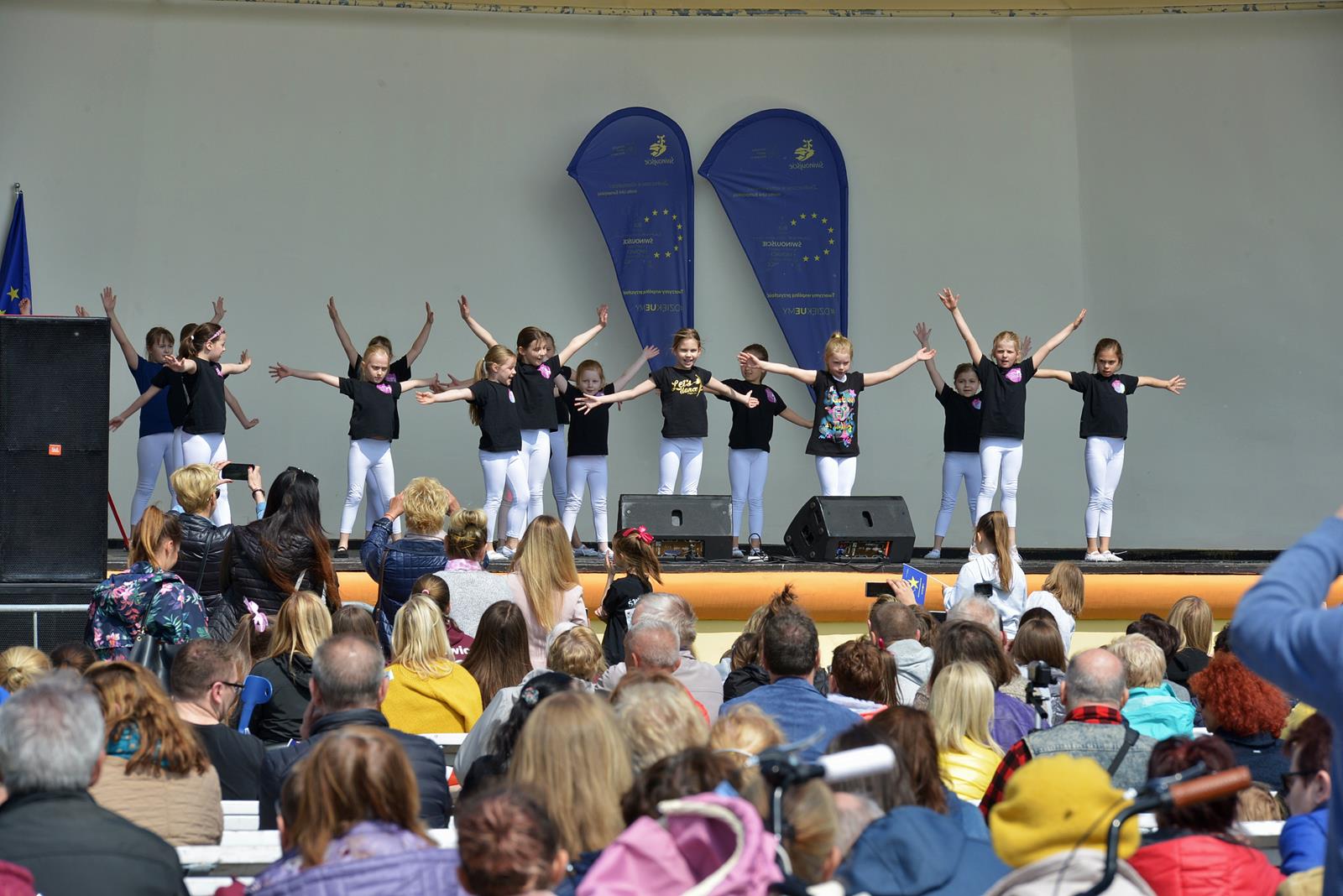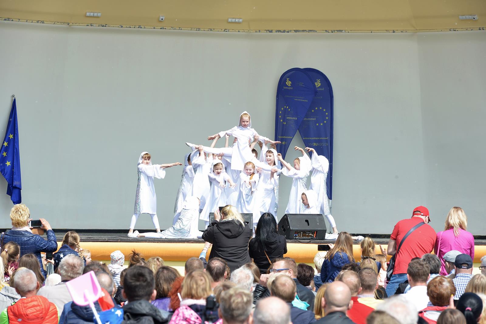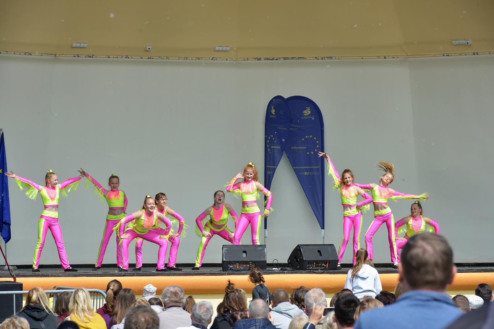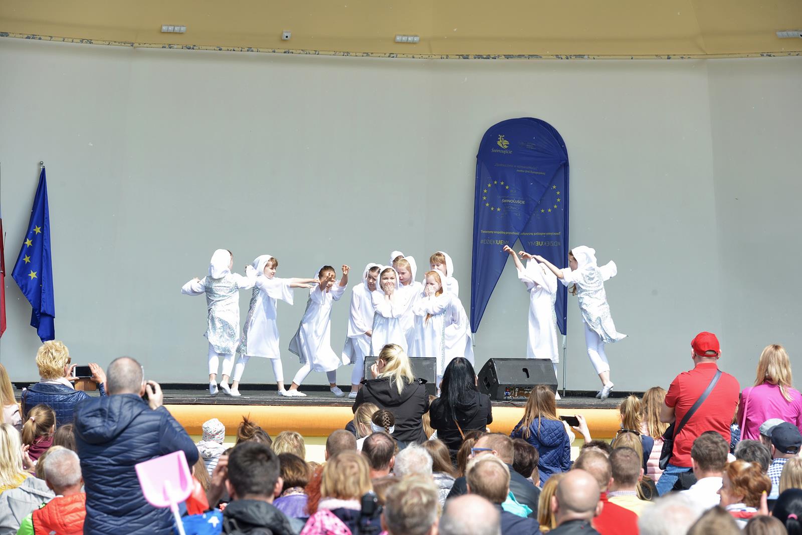 W Świnoujściu w muszli koncertowej, punktualnie o godzinie 12 rozbrzmiał hymn Polski oraz hymn Unii Europejskiej. Na skrzypcach zagrał artysta Marcin Diling. Chwilę później na scenie zaprezentowały się dzieci z pracowni artystycznej Miejskiego Domu Kultury.