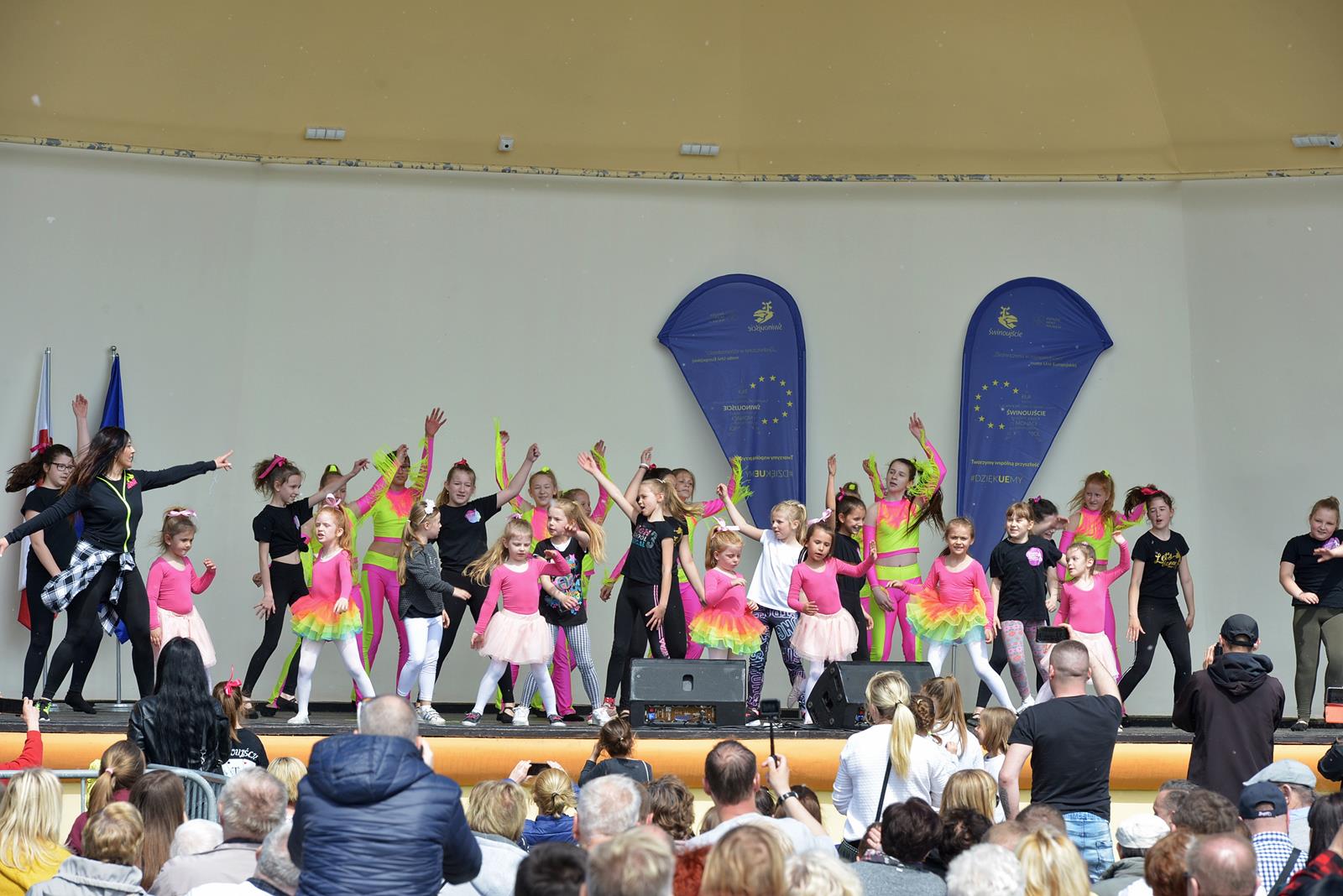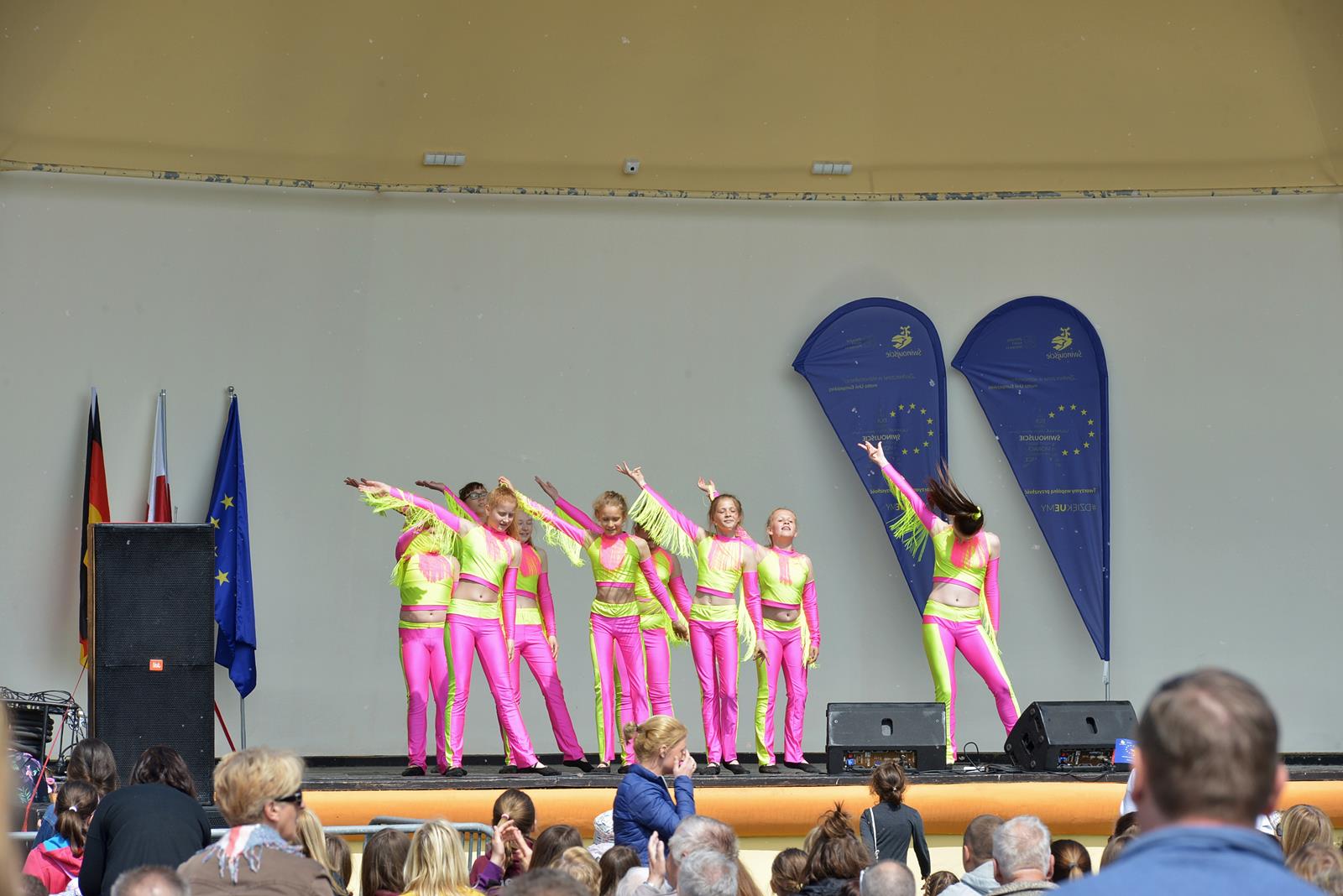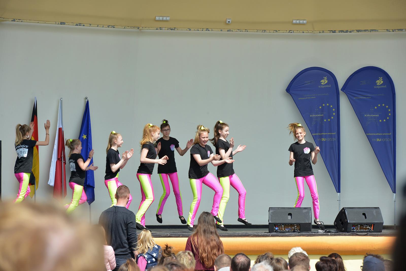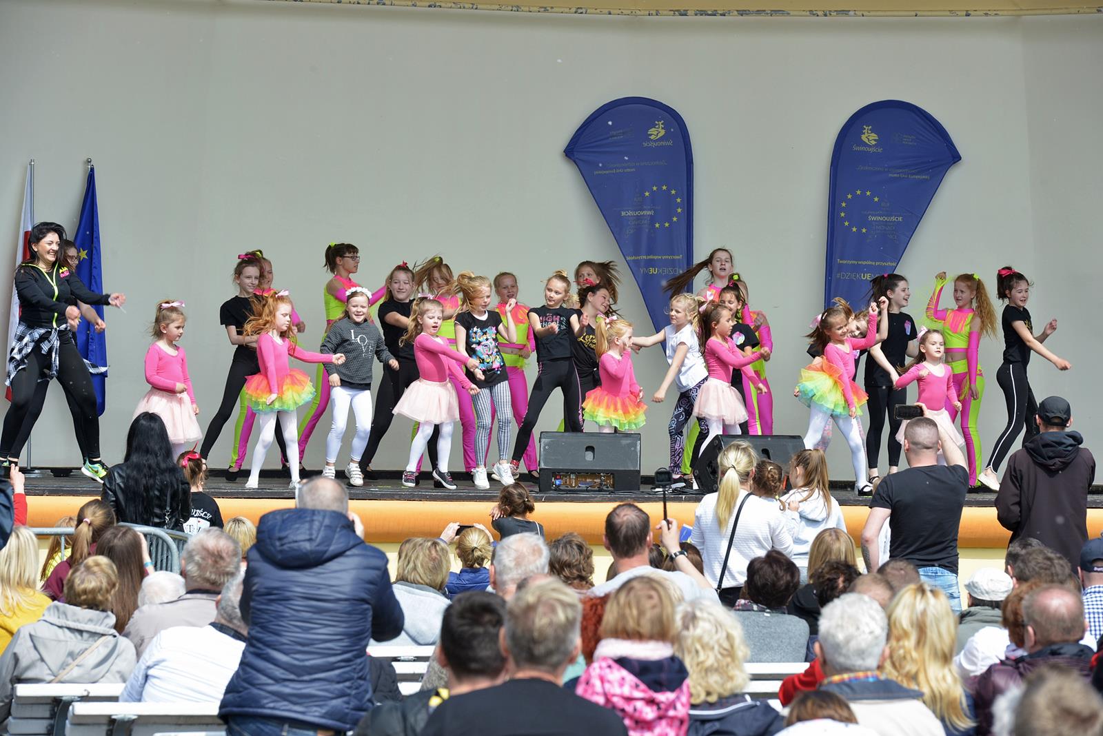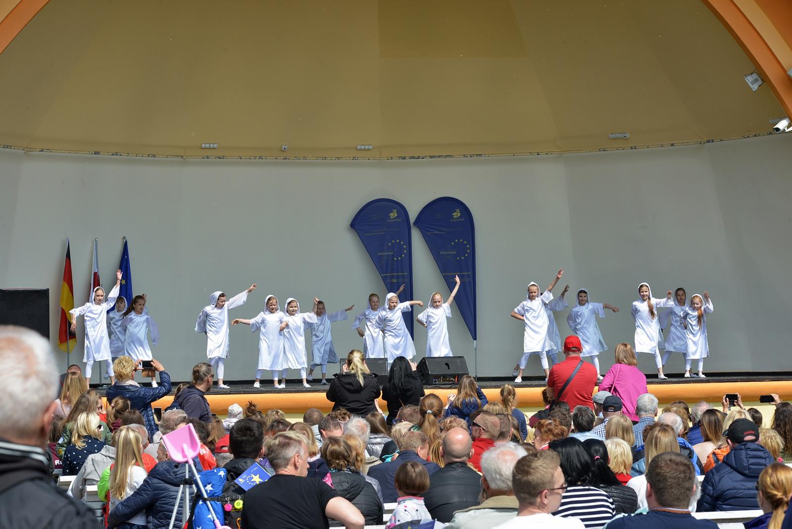 W Świnoujściu w muszli koncertowej, punktualnie o godzinie 12 rozbrzmiał hymn Polski oraz hymn Unii Europejskiej. Na skrzypcach zagrał artysta Marcin Diling. Chwilę później na scenie zaprezentowały się dzieci z pracowni artystycznej Miejskiego Domu Kultury.