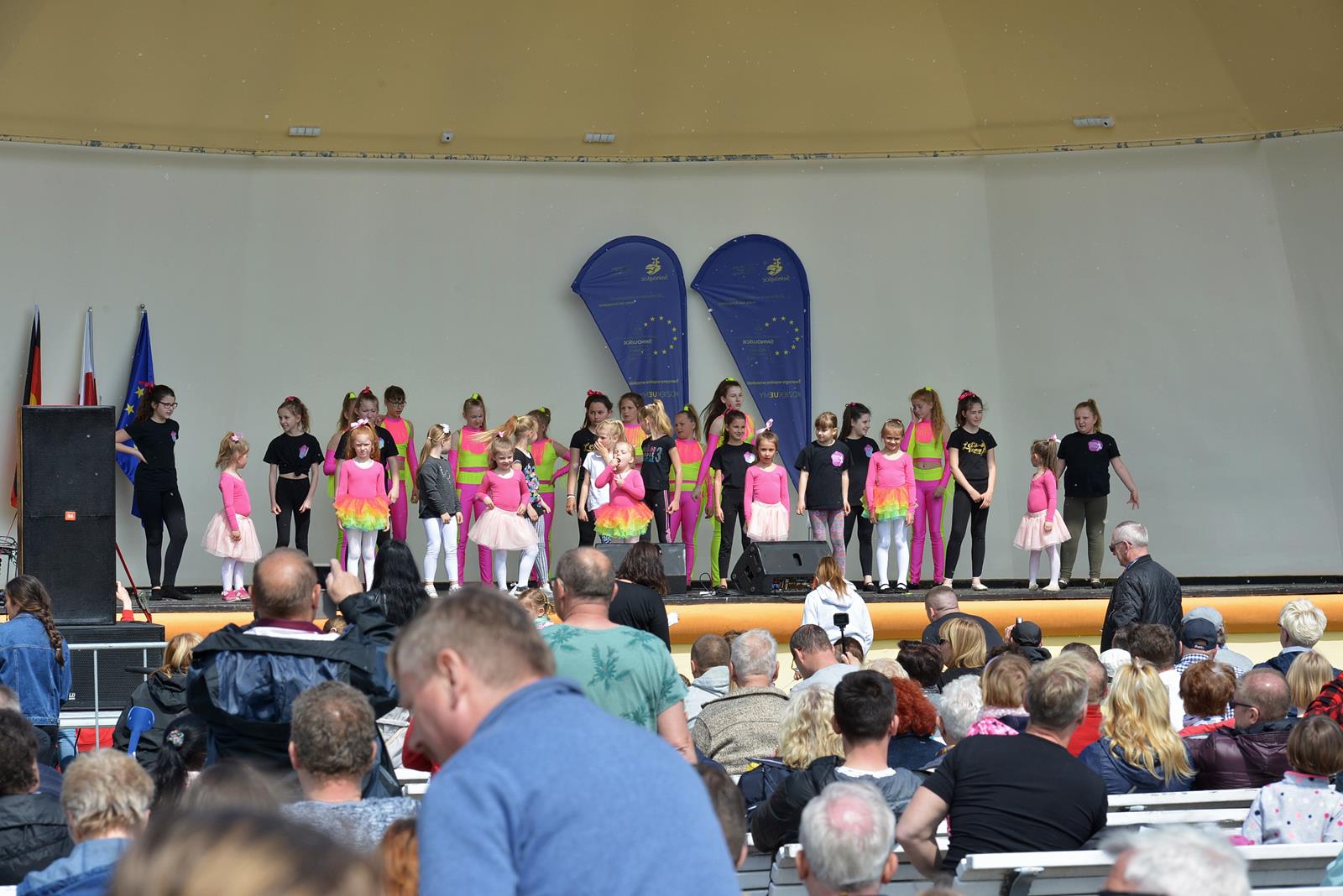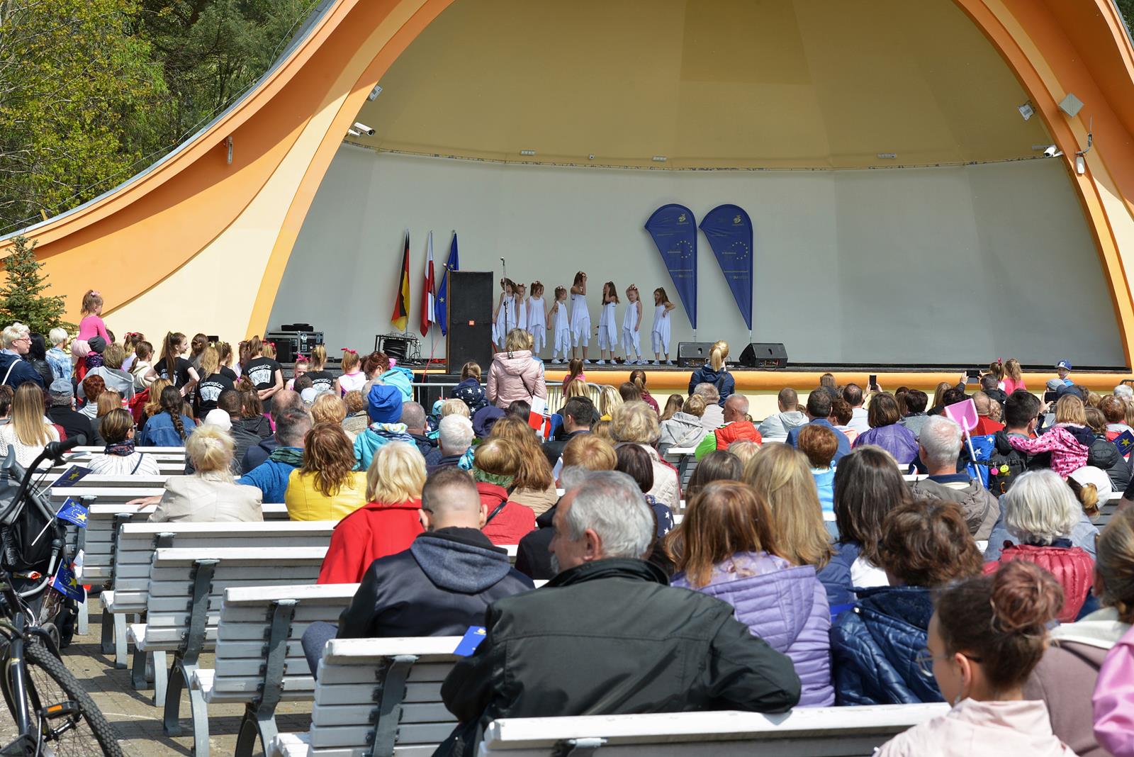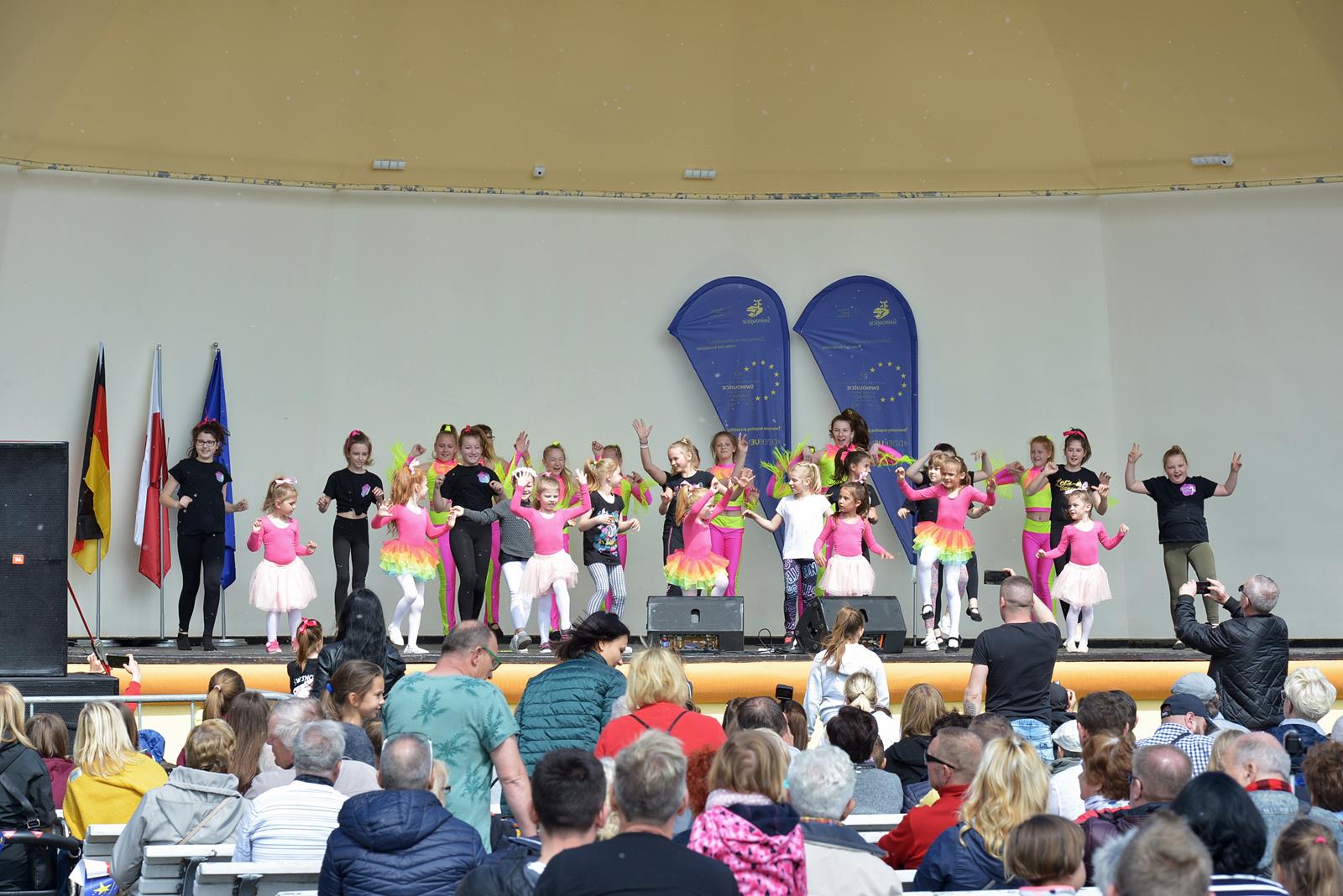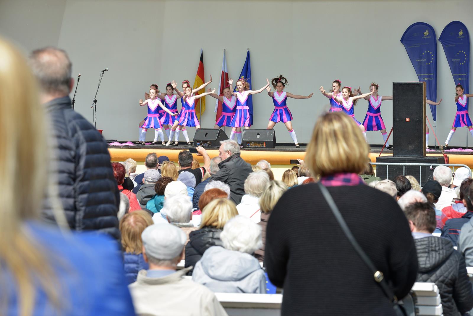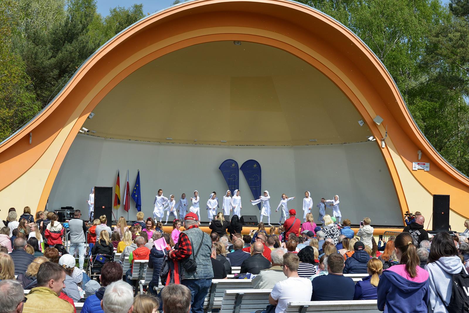 W Świnoujściu w muszli koncertowej, punktualnie o godzinie 12 rozbrzmiał hymn Polski oraz hymn Unii Europejskiej. Na skrzypcach zagrał artysta Marcin Diling. Chwilę później na scenie zaprezentowały się dzieci z pracowni artystycznej Miejskiego Domu Kultury.