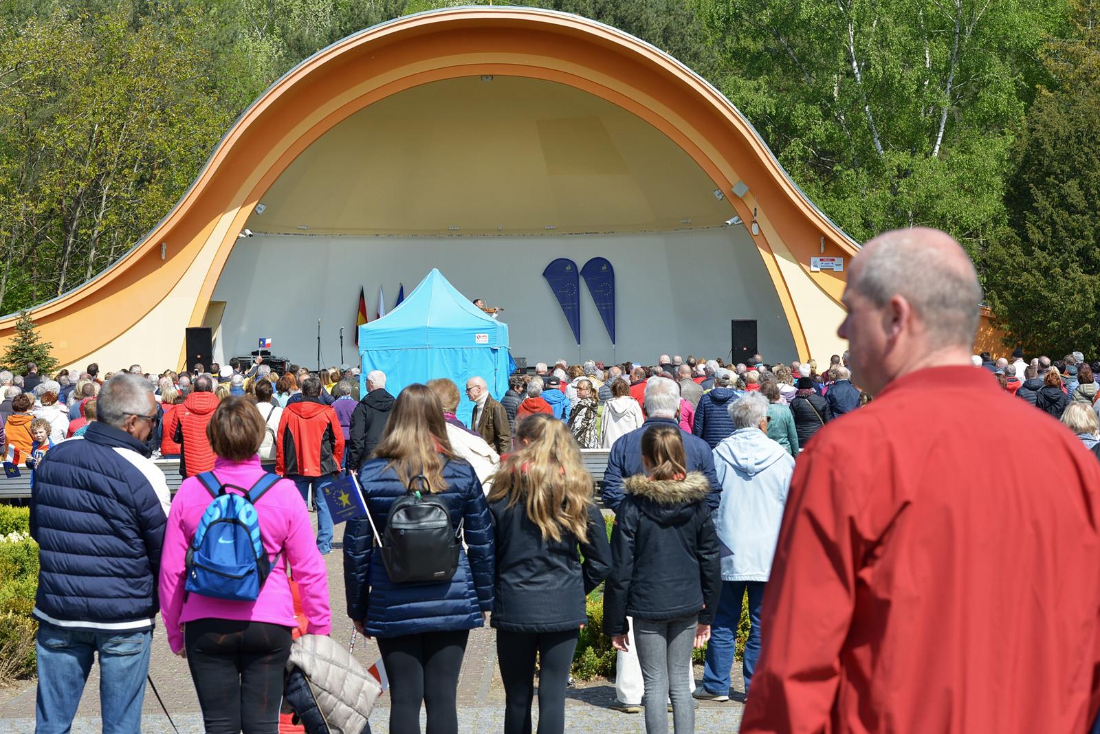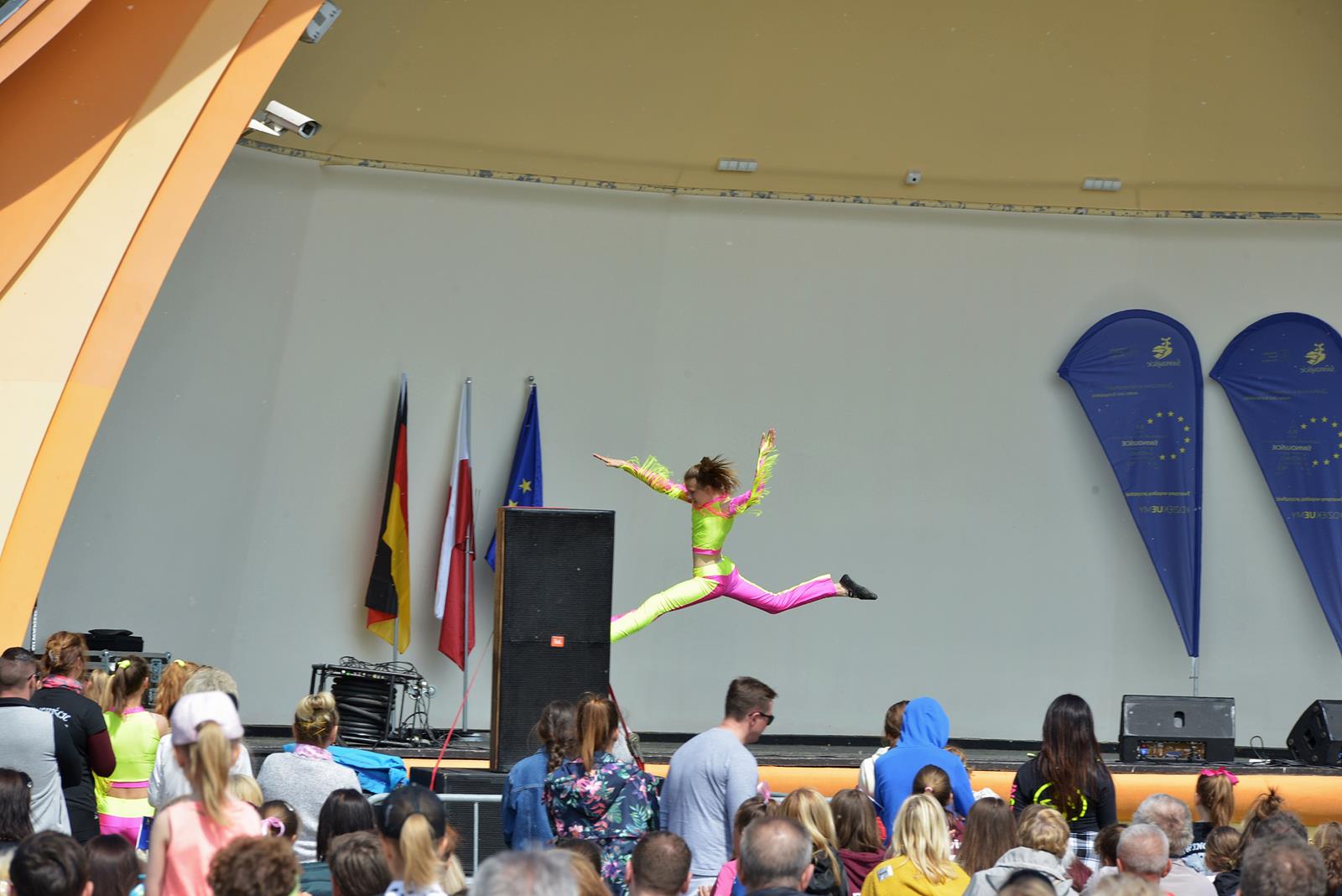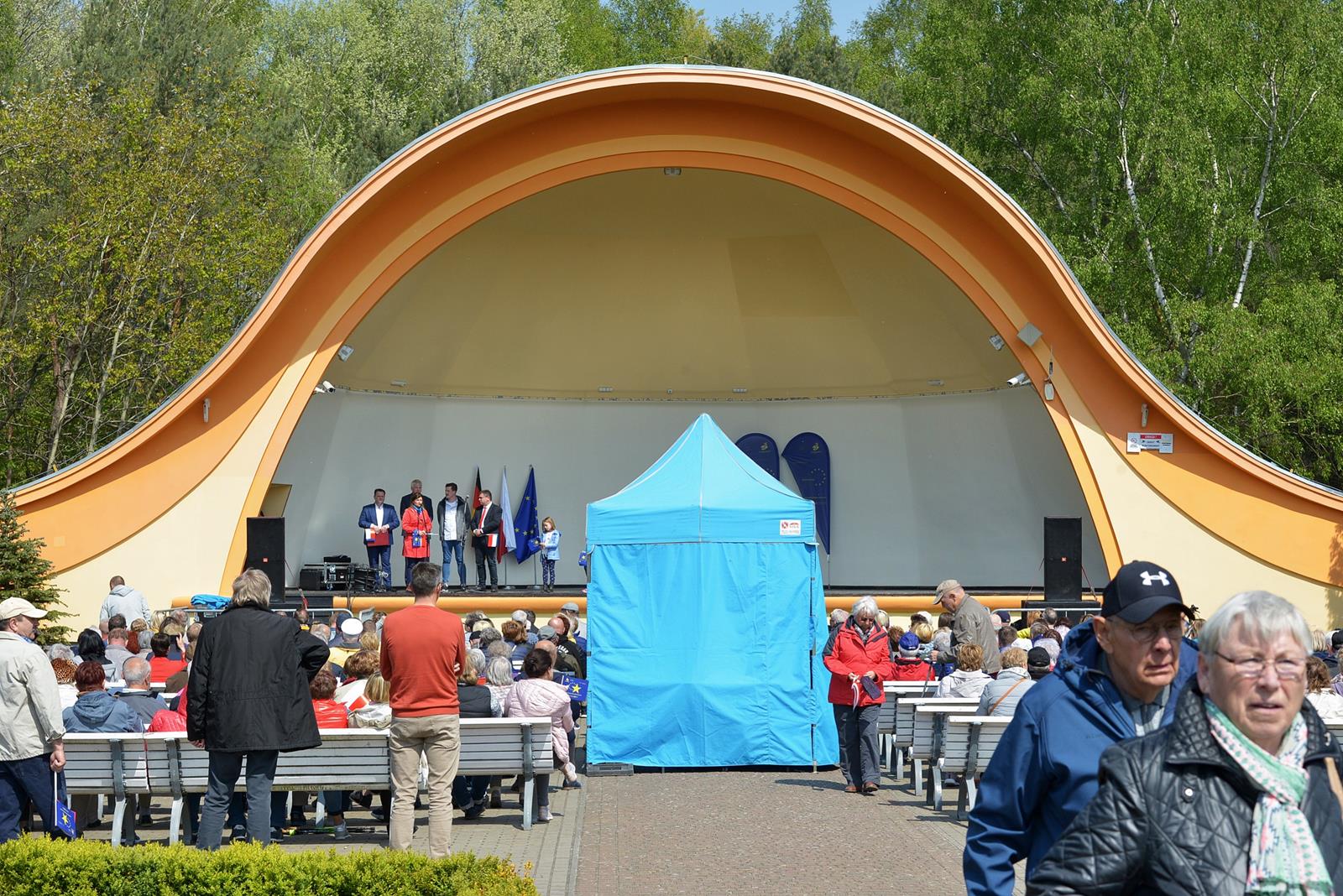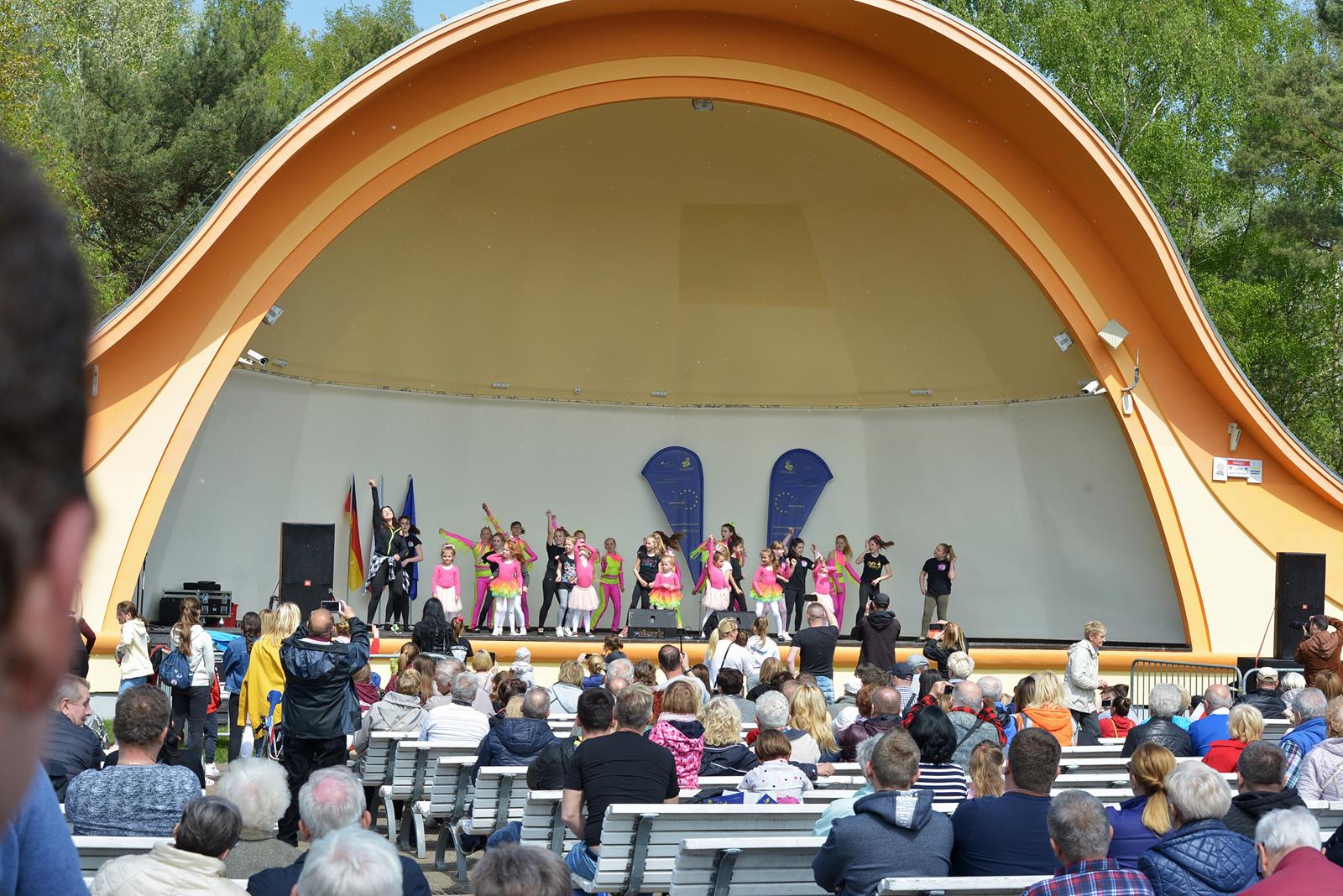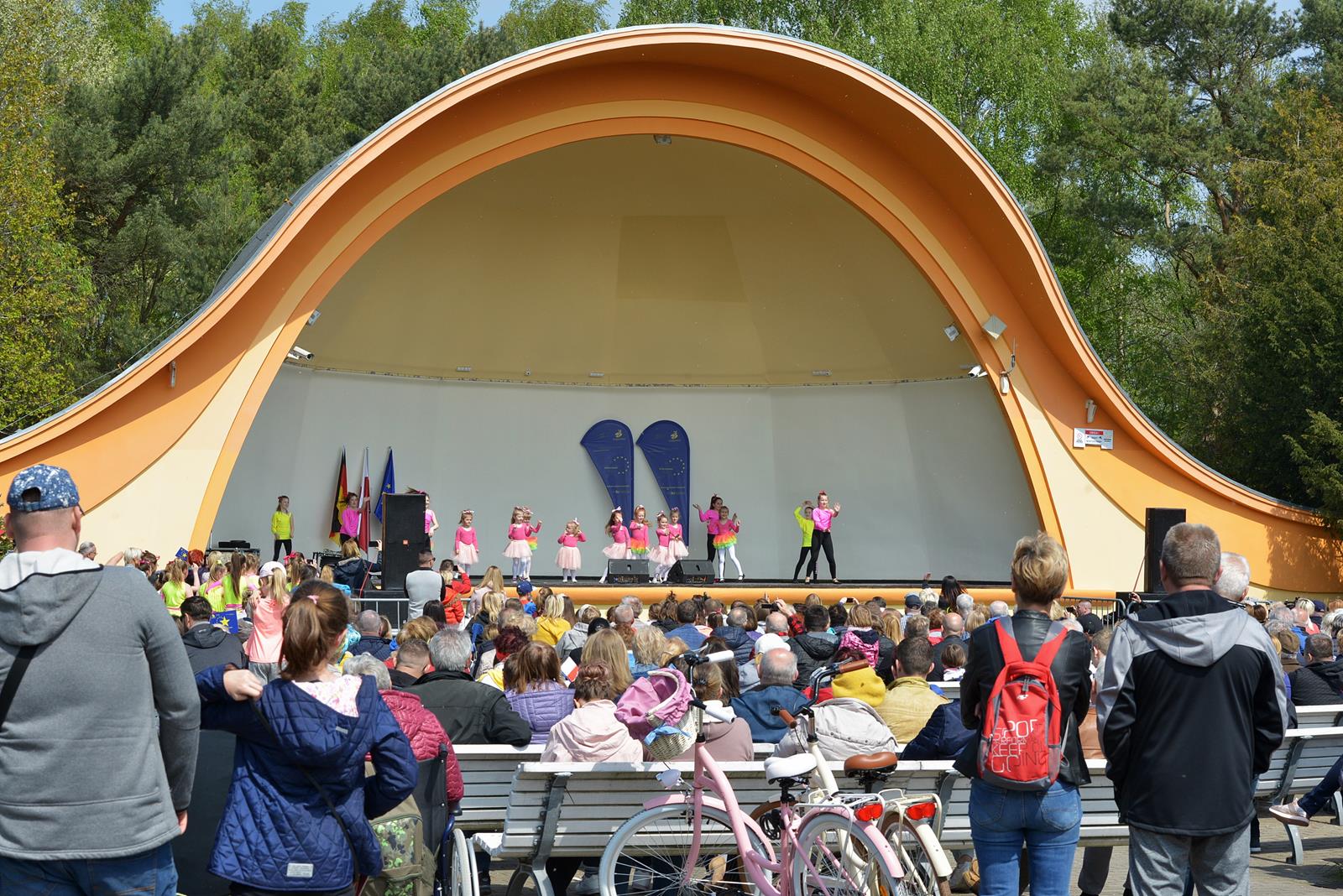 W Świnoujściu w muszli koncertowej, punktualnie o godzinie 12 rozbrzmiał hymn Polski oraz hymn Unii Europejskiej. Na skrzypcach zagrał artysta Marcin Diling. Chwilę później na scenie zaprezentowały się dzieci z pracowni artystycznej Miejskiego Domu Kultury.