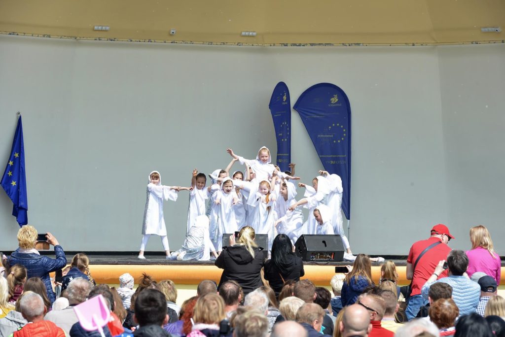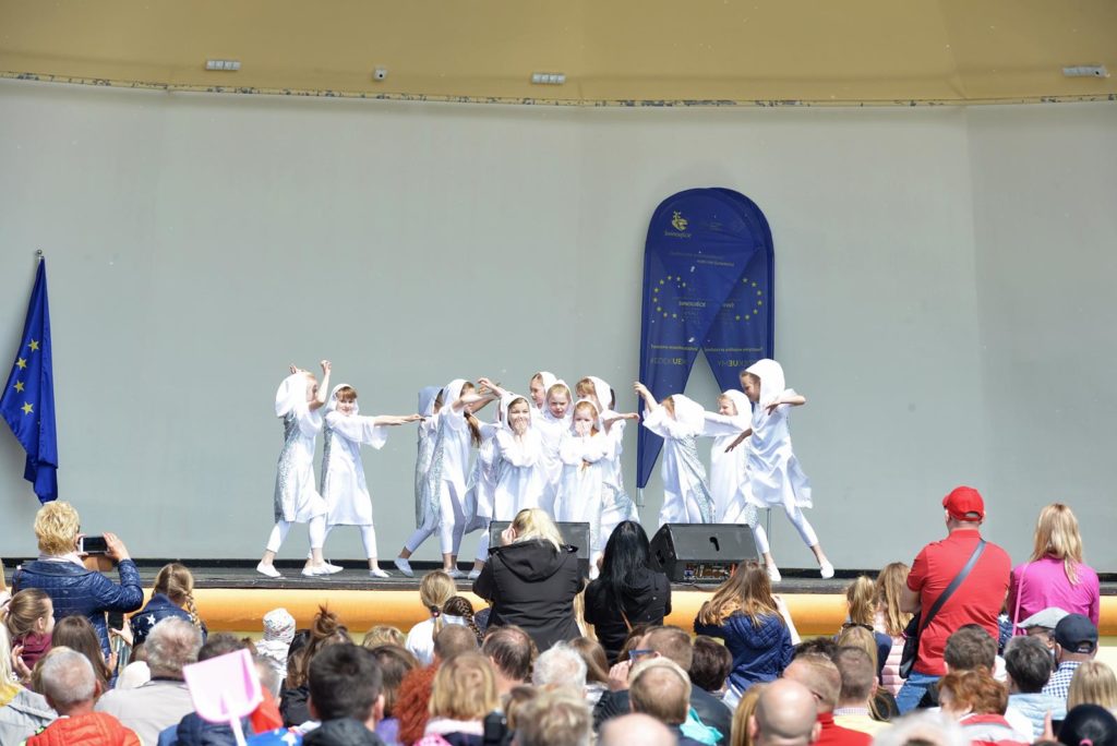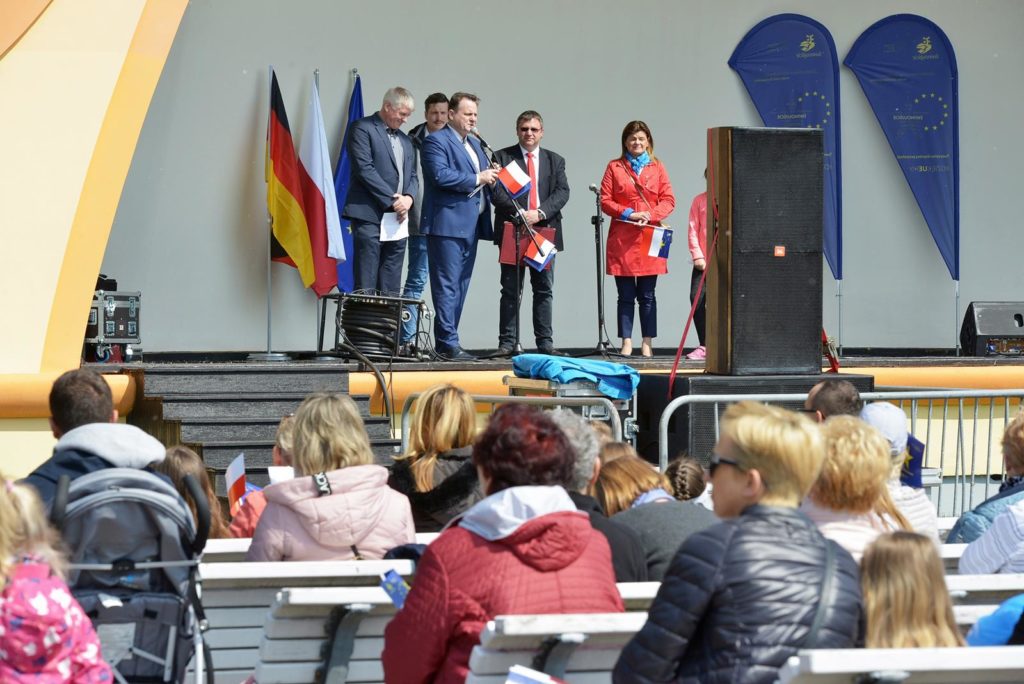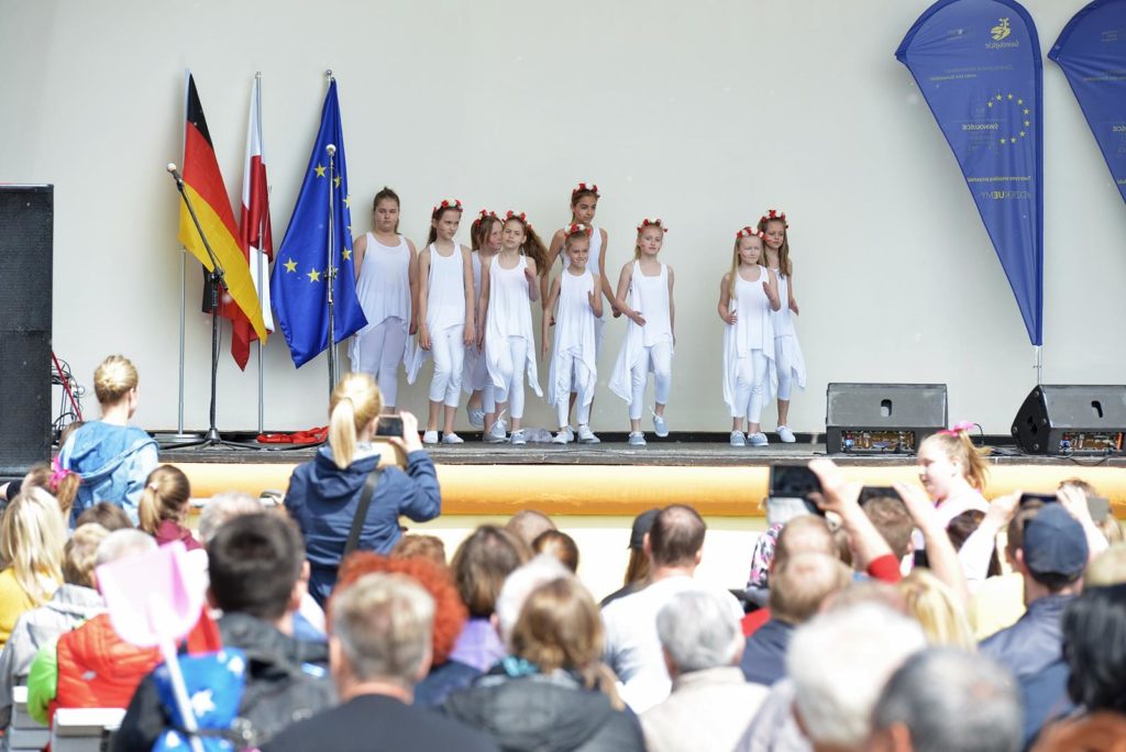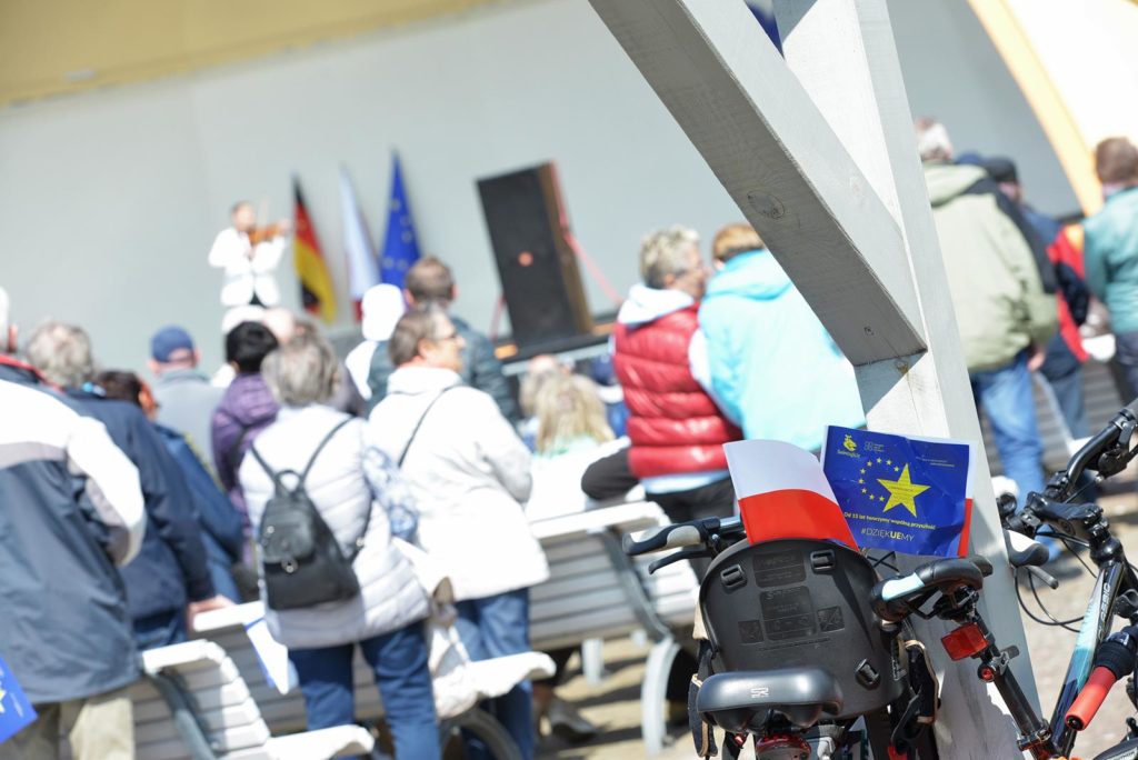 W Świnoujściu w muszli koncertowej, punktualnie o godzinie 12 rozbrzmiał hymn Polski oraz hymn Unii Europejskiej. Na skrzypcach zagrał artysta Marcin Diling. Chwilę później na scenie zaprezentowały się dzieci z pracowni artystycznej Miejskiego Domu Kultury.