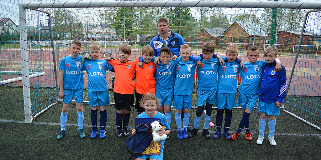 – Po nieudanym pierwszym meczu w którym ulegliśmy gospodarzom nasi zawodnicy wykazali się walecznym charakterem, nie ponosząc porażki w kolejnych rozegranych meczach. Zaangażowaniem oraz dyscypliną na boisku udowodnili, że potrafią zwyciężać. W całym turnieju zdobyliśmy 21 bramek tracąc tylko 3. Strzelcy bramek: Janek W. i Gerard L. po 7, Patryk B. – 4 Kuba T., Adam G. i Aleksander K. po 1, Dziękujemy rodzicom, dziadkom kibicom za dopingowanie naszej drużyny oraz Magdalenie Bortnowskiej za fotorelację. 28.04.2019 był ostatnim turniejem ligowym w którym reprezentowała barwy Floty nasza zawodniczka Marysia Felician, ze względu na zmianę miejsca zamieszkania. Trener Krzysztof na zakończenie turnieju wręczył młodej piłkarce prezent.