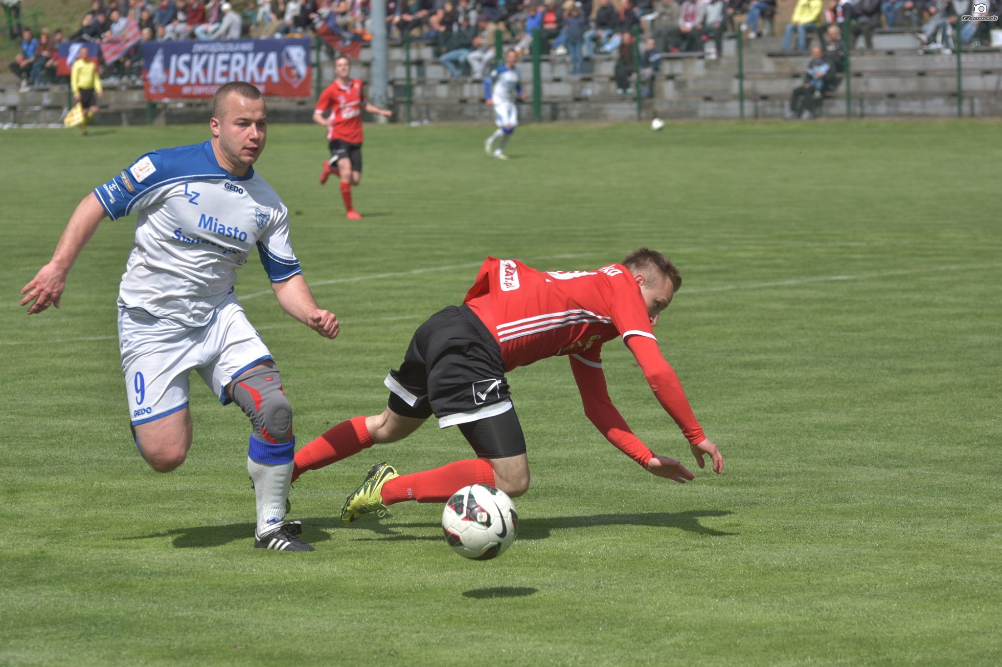W 18 potężną bombą popisał się Kanigowski, ale piłka o metr poszła obok słupka. W 23 niefrasobliwe wybicie zawodnika gospodarzy przejął Staniszewski i poradziwszy sobie z dwoma przeciwnikami, mimo dość ostrego kąta, strzałem w długi słupek pokonał Konieckę. Dwie minuty później, odebrawszy idealne podanie Skwary, kapitalną okazję na drugiego gola miał Mosiądz, ale nie trafił w bramkę. W 41 Staniszewski spróbował powtórzyć sytuację sprzed 18 minut, lecz tym razem piłka wyszła za długi słupek. W pierwszej minucie czasu doliczonego Wojciechowski znalazł się sam na sam z Zimeckim, lecz nasz bramkarz wybił nad poprzeczkę. Po rzucie rożnym niegroźnie wyglądający strzał oddał Bąba, lecz piłka odbiwszy się od wyciągniętej nogi Rogowskiego wpadła do bramki.