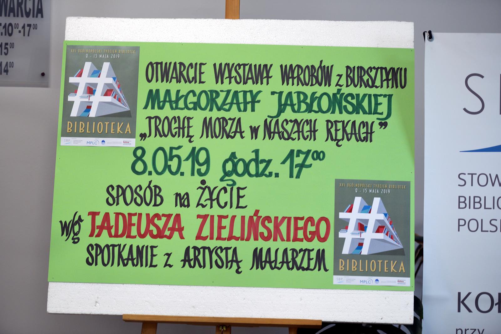Miejska Biblioteka Publiczna im. Stefana Flukowskiego w Świnoujściu informuję, że do 15 maja obchodzony będzie XVI Ogólnopolski Tydzień Bibliotek. Tegorocznym hasłem przewodnim OTB jest: #biblioteka. Pierwszym wydarzeniem była prezentacja wystawy wyrobów z bursztynu Małgorzaty Jabłońskiej: „Trochę morza w naszych rękach” oraz spotkanie ze świnoujskim artystą malarzem Tadeuszem Zielińskim.