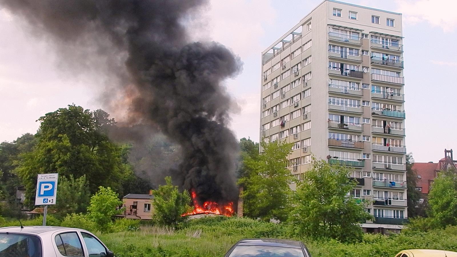 Kilka zastępów straży pożarnej gasiło pożar przy ulicy Wyspiańskiego w Świnoujściu. Do zdarzenia doszło w środę wieczorem.
