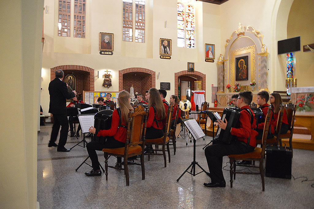 I znów słuchanoKameralnej Orkiestry Akordeonowej. Młodzi muzycy wykonali Poloneza z filmu „Pan Tadeusz” W. KILARA, Libertango i Oblivion A. PIAZZOLLI, Uwerturę do opery „Wesele Figara W. A. MOZARTA i Taniec Bałkański J. WOJTAROWICZA.W każdym z tych zagranych utworów była młodzieńcza pasja i radość, a także muzyczna dojrzałość interpretacji, co niewątpliwie jest wielkązasługą prowadzącego Orkiestrę Zbigniewa CZURYŁO.