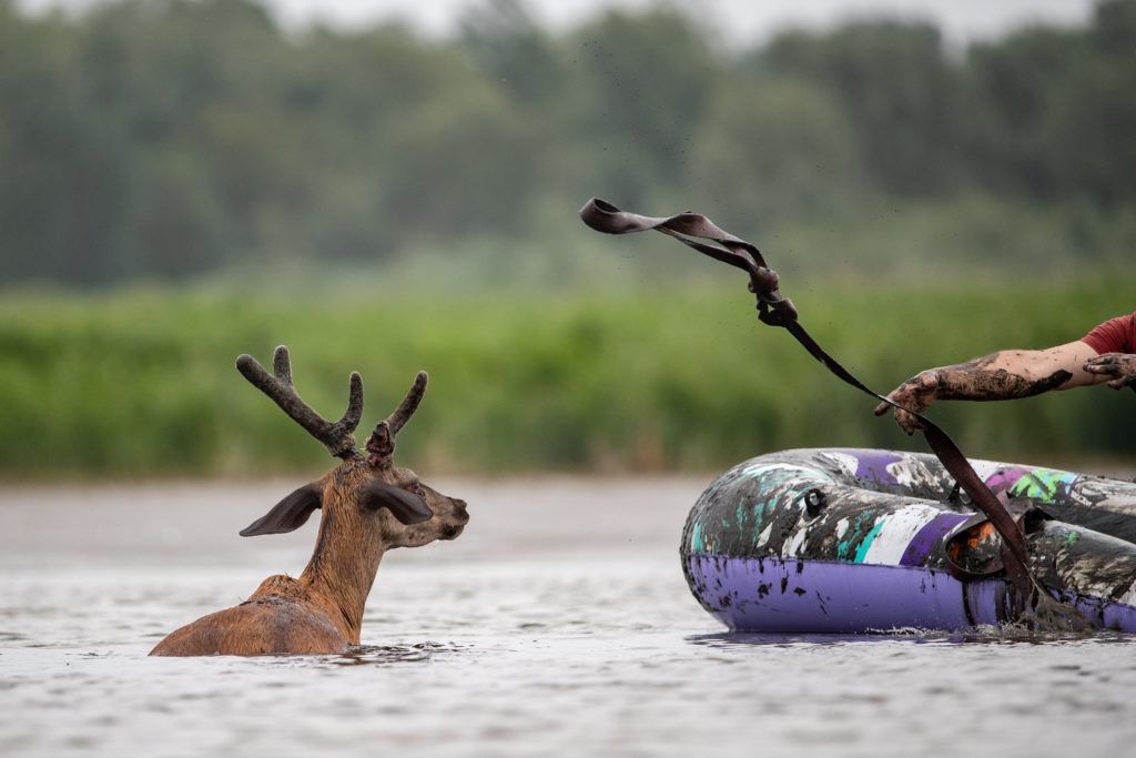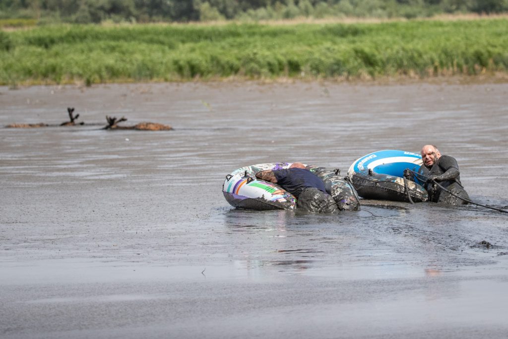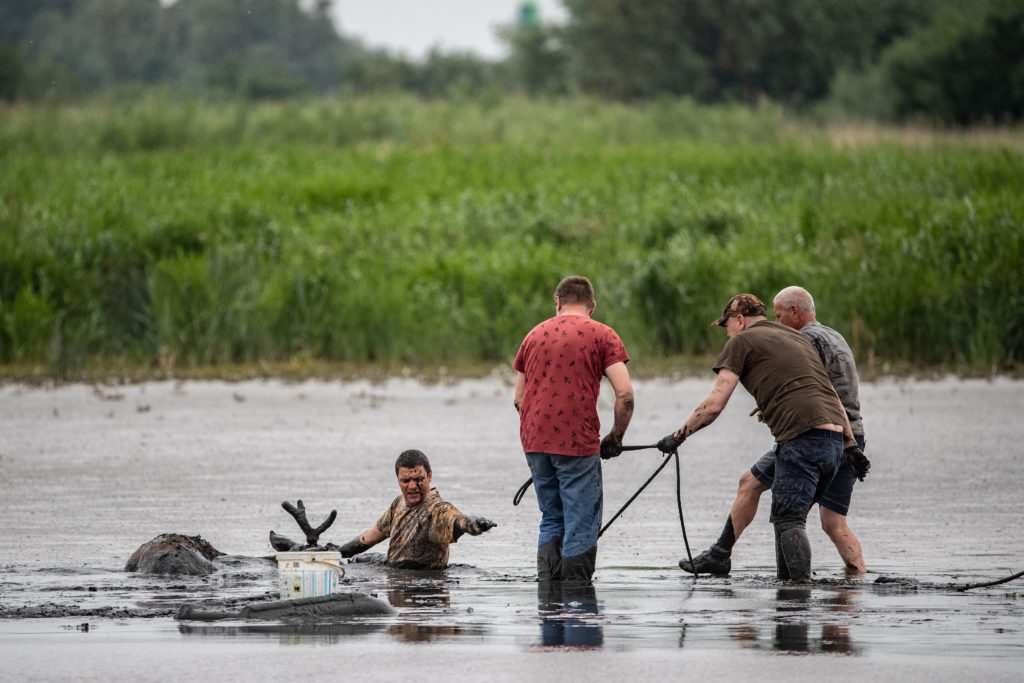 Nie poddano się. Gdy sytuacja była już beznadziejna, wtedy z pomocą przyszli myśliwi z Koła Łowieckiego Dzik. Za pomocą lin, samochodu terenowego i pontonów wyciągnęli przestraszone zwierzęta.