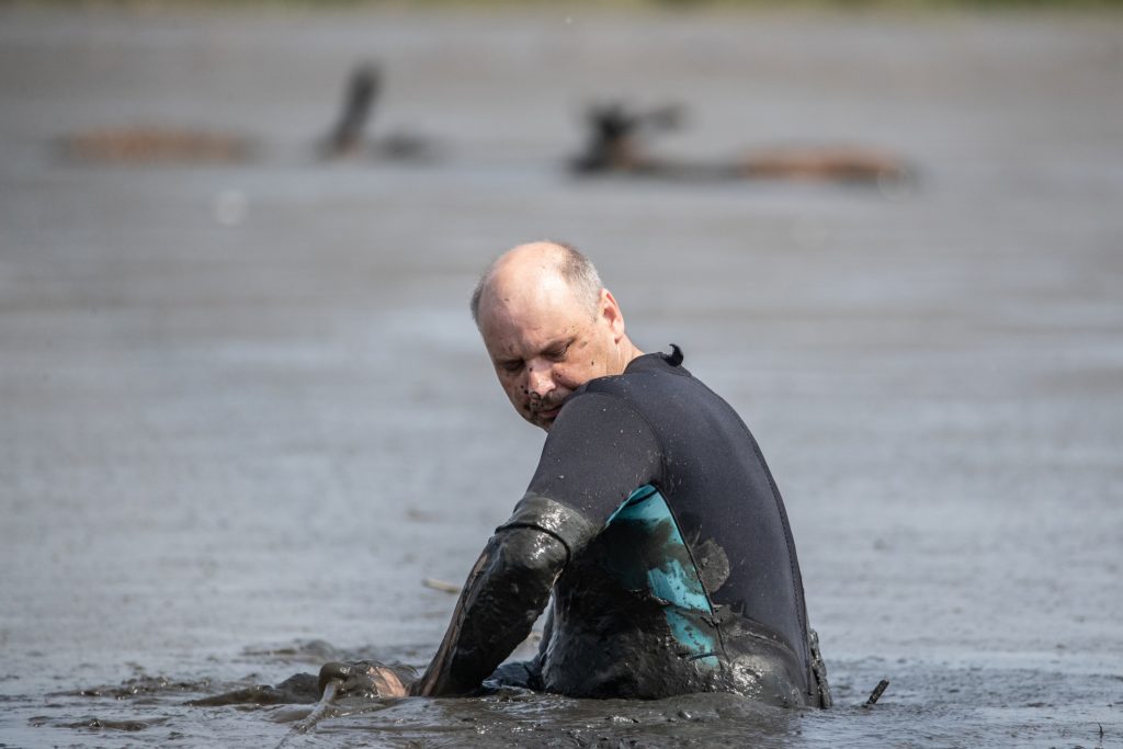Zwierzęta weszły w błotnistą maź w pobliżu Zalewu Szczecińskiego. To pole refulacyjne służące do wyrzucania urobku z pogłębiania toru wodnego.