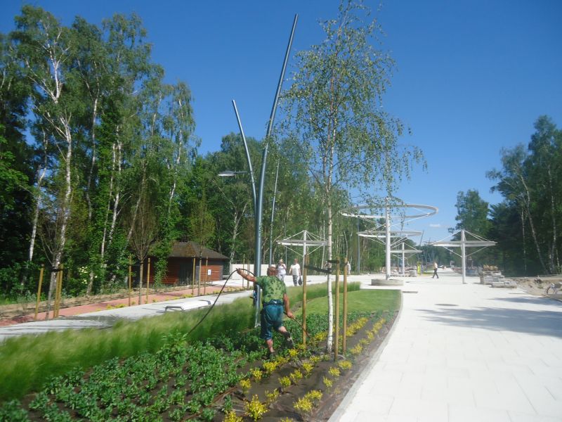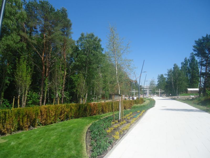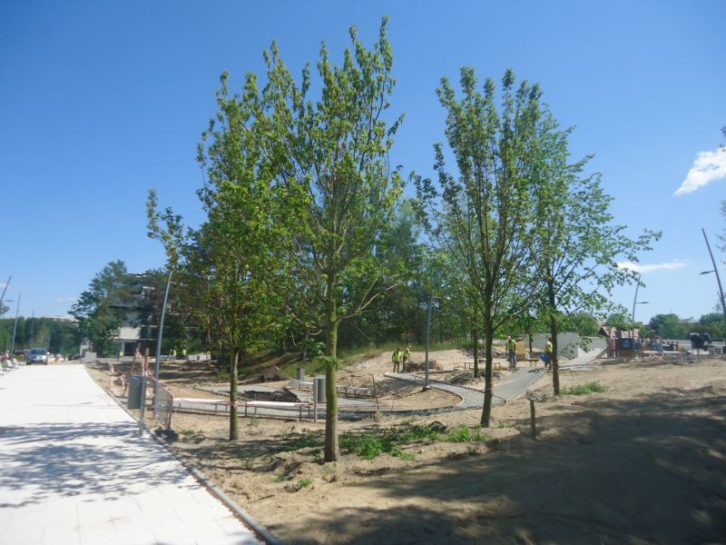 szczególnie ładne są te usychające już iglaki… a tak na marginesie to kiedy ten betonowy dziwoląg miał być ukończony…? przypadkiem nie w zeszłym roku jakoś? co do zieleni i drzew to zamiast teraz sadzić i czekać aż urosną wystarczyło zostawić niektóre z tych które już tam były i tylko wkomponować je w projekt… ale co ja od debili wymagam myślenia..