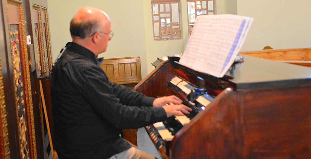A kiedy oklaski ucichły, przy organach zasiadł Jarosław Ciecierski- organista i kompozytor. Organową część koncertu rozpoczął kompozycją A. Guilmant’a – wspaniałym marszem nt. „Lift up your heads” z Oratorium „Mesjasz” G.F. Haendla. To było mistrzostwo gry i orkiestrowa rejestracja organów. Następnie wysłuchano dwóch utworów J. Alain’a, który mając 29 lat zginął na polu bitwy II wojny światowej. Najpierw I Fantazję tego francuskiego kompozytora. Pierwsza część utworu w brzmieniu dramatyczna, pełna muzycznego wzburzenia, druga krótsza, uspokajająca.