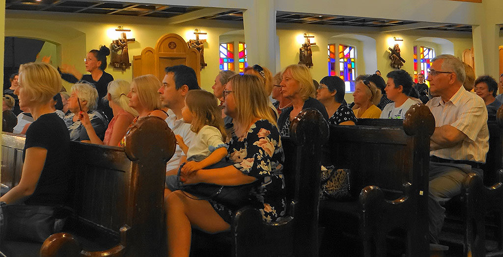 zaśpiewał jeszcze Ponetemente – lamentację włoskiego, współczesnego kompozytora Lorenzo Donatiego. Dziewczęta rozmieszczone były w różnych częściach kościoła i mieliśmy wrażenie, że echo powtarza tę piękną, melancholijną pieśń, nagrodzoną gromkimi brawami.