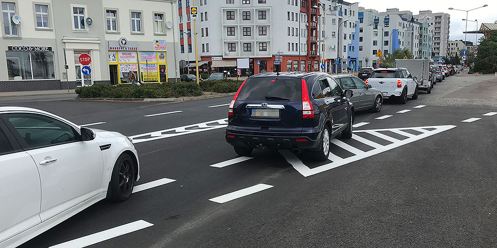 Parkowanie w odległości mniejszej niż 10 m od przejścia dla pieszych, zwłaszcza w pobliżu szkól i przedszkoli, zastawianie chodnika w sposób uniemożliwiający przejście rodzicowi z małym dzieckiem czy osobie niepełnosprawnej zakończy się mandatem karnym. Należy pamiętać, iż chodnik jest częścią drogi przeznaczoną dla ruchu pieszych. Zatrzymanie i postój pojazdu na chodniku jest dopuszczony tylko przy spełnieniu warunków wynikających z art. 47 Ustawy Prawo o Ruchu Drogowym.