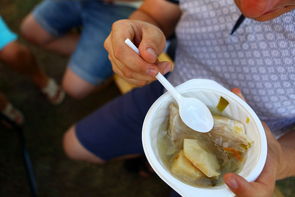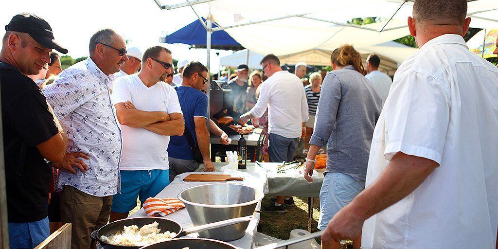 Fundacja Centrum Inicjatyw Regionalnych i Międzynarodowych, która była organizatorem wydarzenia zapewniła również ucztę kulinarną. Badacze Fundacji w ostatnich miesiącach zbierali przepisy na dania rybne wśród rybackich rodzin. Wybrane z nich zostały przygotowane na żywo, na oczach publiczności oraz podane do degustacji. Przygotowaniu towarzyszyła opowieść o historii konkretnych dań i ich znaczeniu dla regionu, nie zabrakło oczywiście instruktażu dotyczącego sposobu przygotowania. Goście mogli spróbować flaków z lina, miętusa na słoninie, wędzonego leszcza, zupy rybnej gotowanej na żywym ogniu, oraz smażonego okonia. Dla głodnych znalazła się również karkówka i kiełbasa z grilla. Organizatorów niezwykle cieszyły pozytywne opinie o tych daniach, które padały z ust rybaków i ich rodzin.