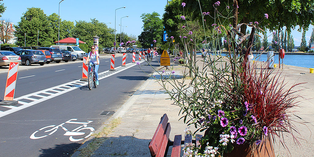 Zmiany w organizacji ruchu na ul. Wybrzeże Władysława IV promują użytkowników rowerów.