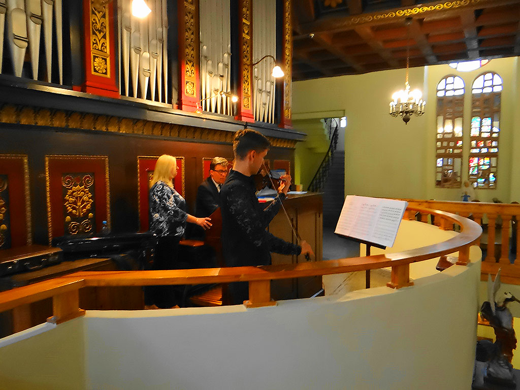 Po czterech latach ponownie przy organach zasiadł Adam KLARECKI – koncertujący organista Bazyliki katedralnej we Włocławku. Oprócz gry solo akompaniował, goszczącemu po raz pierwszy w Festiwalu, Karolowi LIPIŃSKIEMU-BRAŃSKA – laureatowi konkursów m.in. ‘’Ośmiu wspaniałych” I nagrody International Master Competition (2016), koncertującego w wielu krajach Europy i Chinach. On też rozpoczął muzyczny wieczór trzema częściami II Sonaty na skrzypce solo Benjamina GODARDA, a zagrał z młodzieńczą pasją, znakomitą techniką gry. Wspaniały utwór, świetnie odebrany przez publiczność, co odzwierciedliły długo trwające oklaski.
