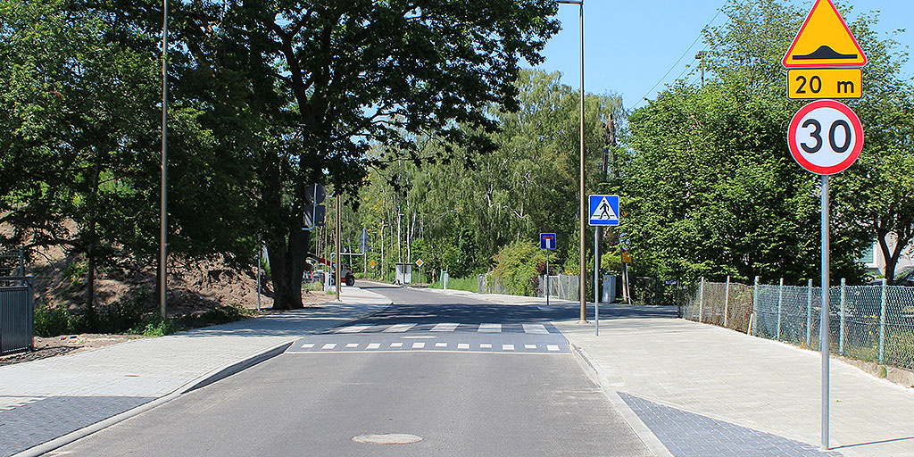 Przy okazji budowy nowego przedszkola miejskiego przebudowana i wydłużona została ulica Bydgoska. Jedną z najistotniejszych zmian jest tzw. wyniesione skrzyżowanie z ul. Olsztyńską. Toteż kierowców prosimy o uwagę i stosowanie się do znaków ograniczających maksymalną prędkość.