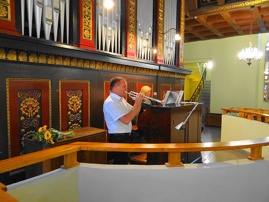 Za nami półmetek XXI festiwalu. W ostatnim lipcowym koncercie (26.07) wystąpili; Ewa SAWOSZCZUK – mistrzyni gry organowej, maestra Beata BOBIŃSKA – sopran i Janusz BOBIŃSKI – wirtuoz trąbki.