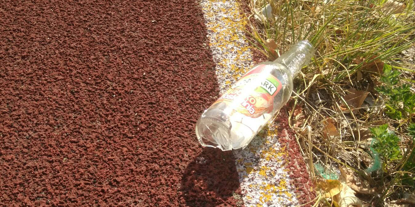 Mam nadzieję że czytelnik podniósł tą butelkę i wyrzucił.Nikt inny jak korzystający śmiecą na boisku.Skupić się na takich osobnikach a nie fotki pstrykać.