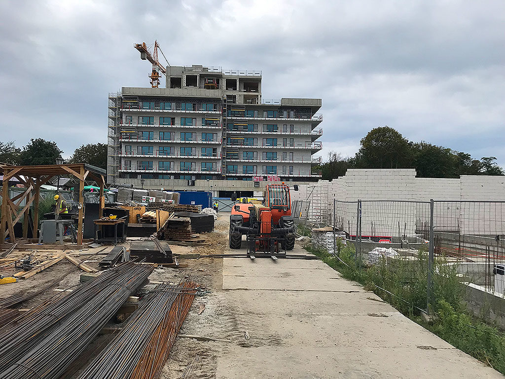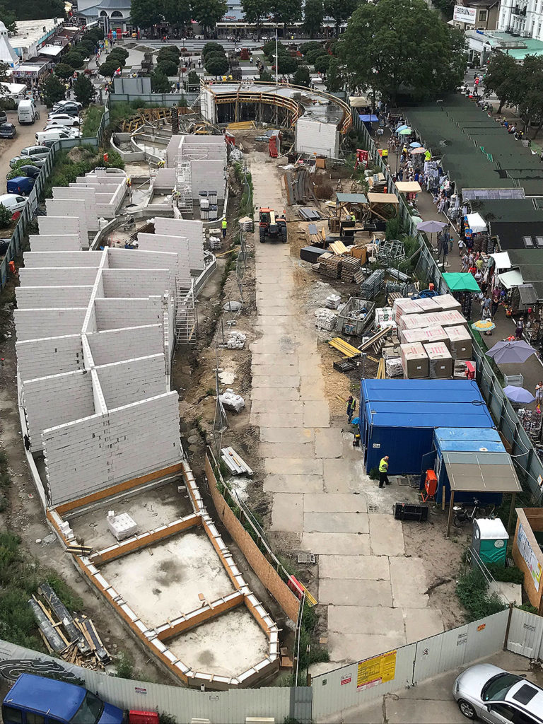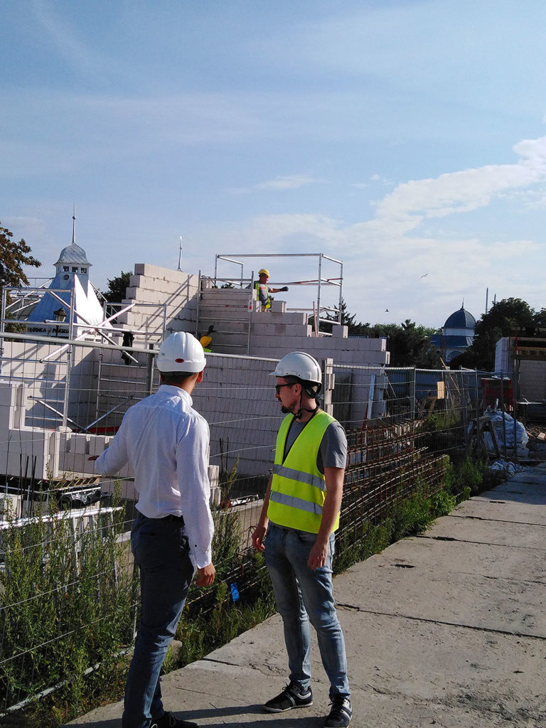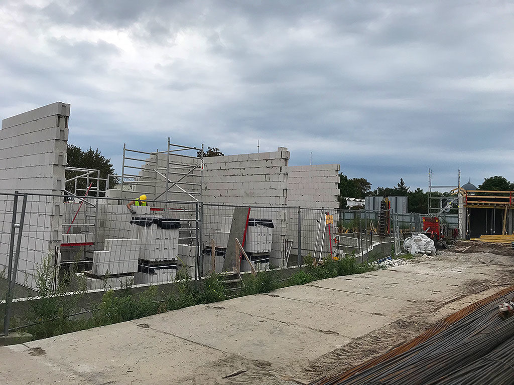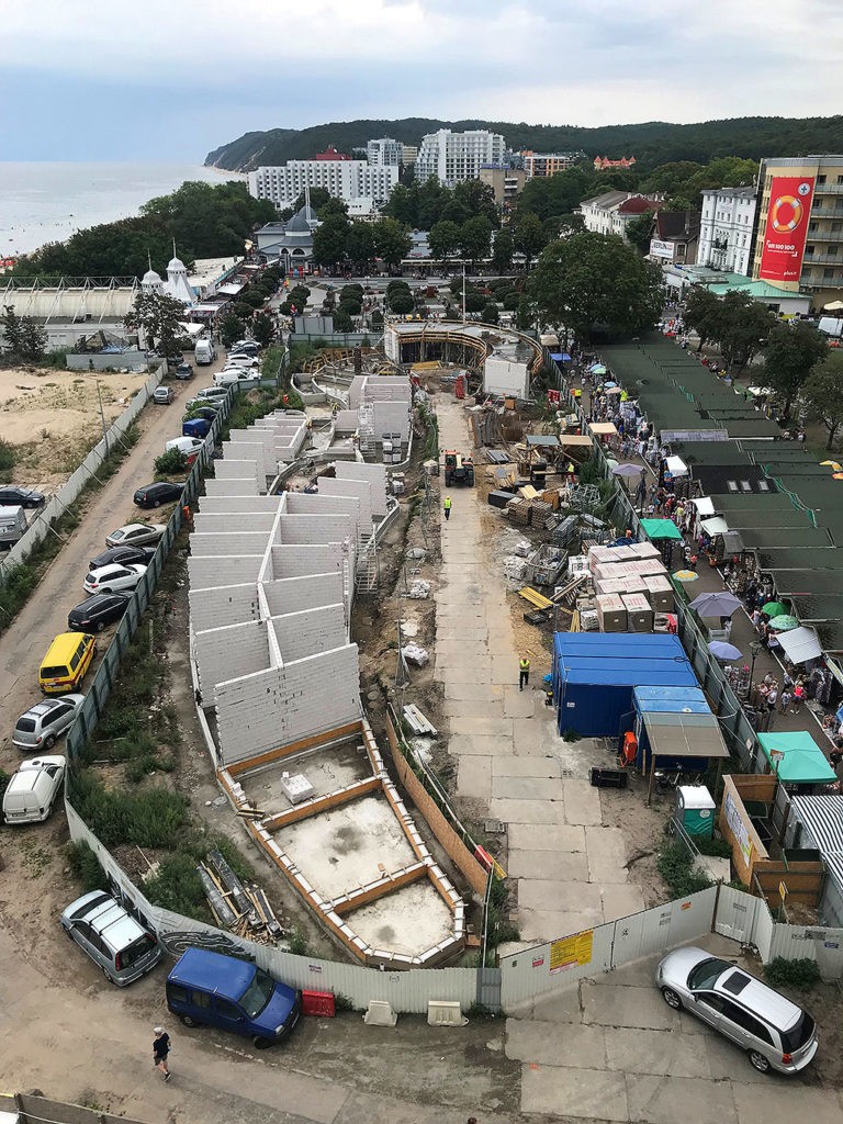 ,,Jesteśmy na etapie stanu surowego, mamy już część płyty fundamentowej. Aktualnie trwają prace żelbetowe oraz roboty murowe. Warto podkreślić trudność tej inwestycji, ponieważ ze względu na trwający sezon letni wykonujemy ją etapami. Po sezonie czynne obok obiekty handlowe zostaną usunięte, a teren ten powiększy plac budowy” – poinformował kierownik budowy Mateusz Balcer. Termin oddania obiektów do użytku to drugi kwartał 2020 roku.