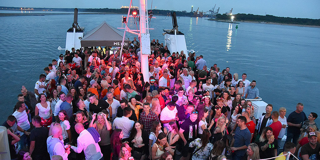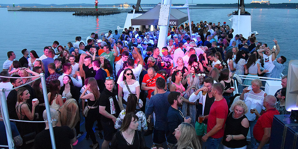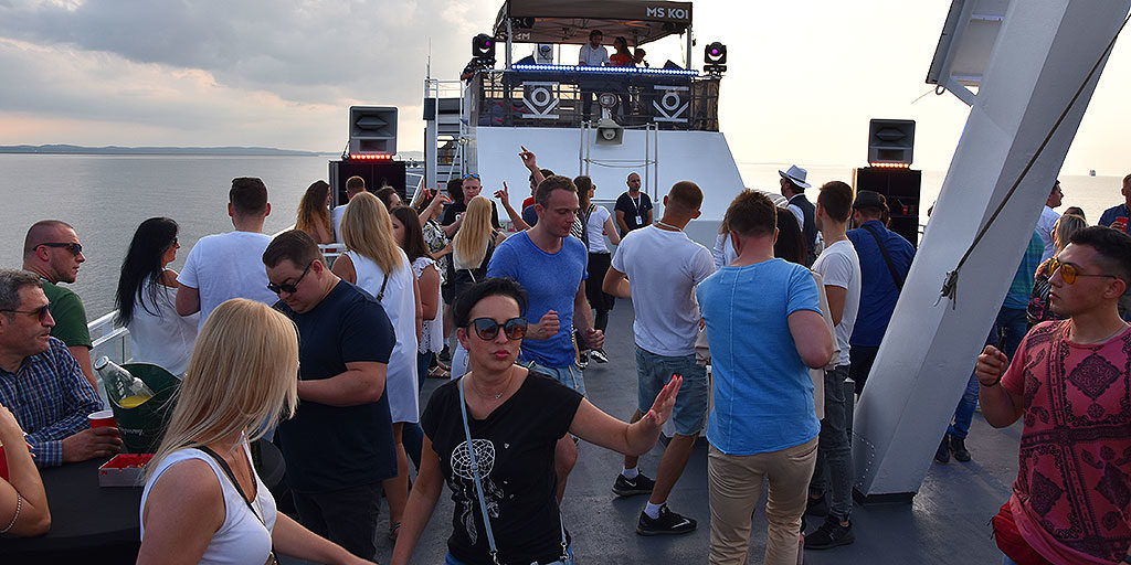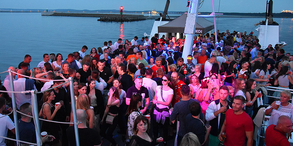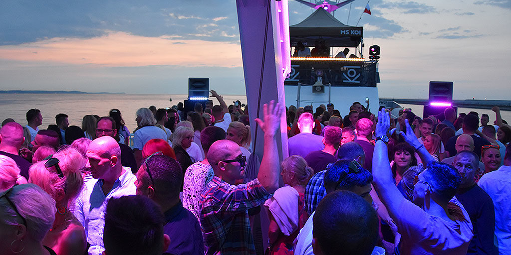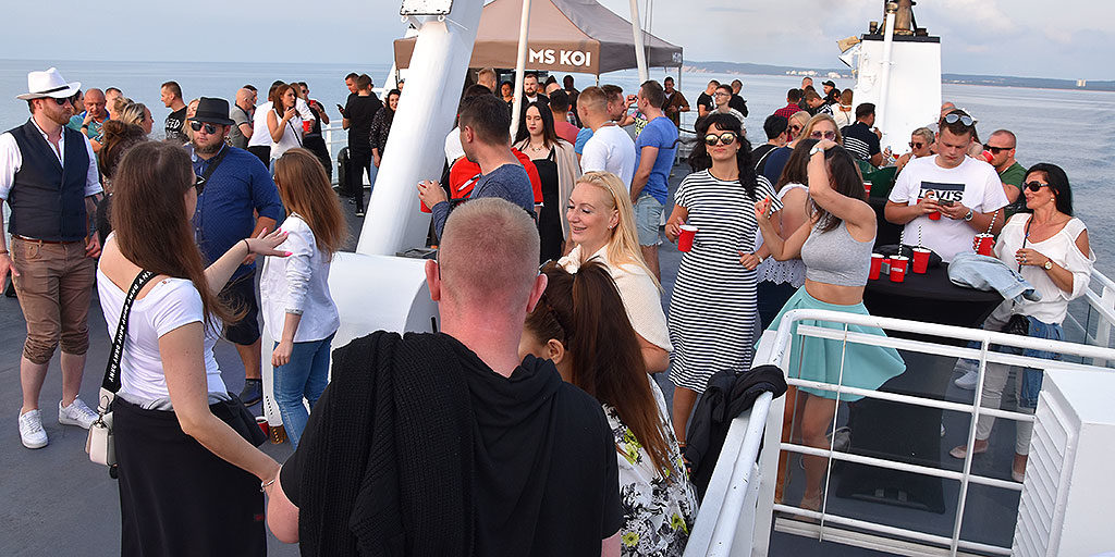 Około 500 pasażerów uczestniczyło we wtorkowej imprezie zorganizowanej na pokładzie statku eventowego m/v Koi pływającego po Zatoce Pomorskiej. DJ i cztery suto wypełnione bary zapewniły dobry nastrój. Przy okazji można było podziwiać zachód słońca chowającego się za horyzont. Statek wypłynął z Międzyzdrojów o godzinie 19 – tam zabrał pierwszych pasażerów. Kolejni weszli na pokład w Świnoujściu. Impreza na m/v trwała do 1 w nocy.
