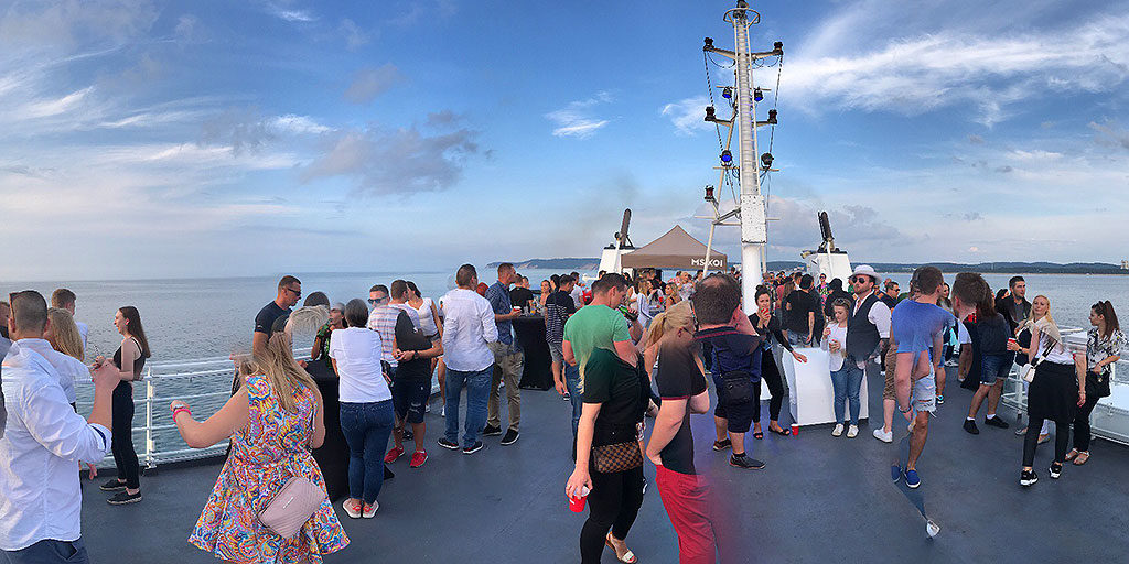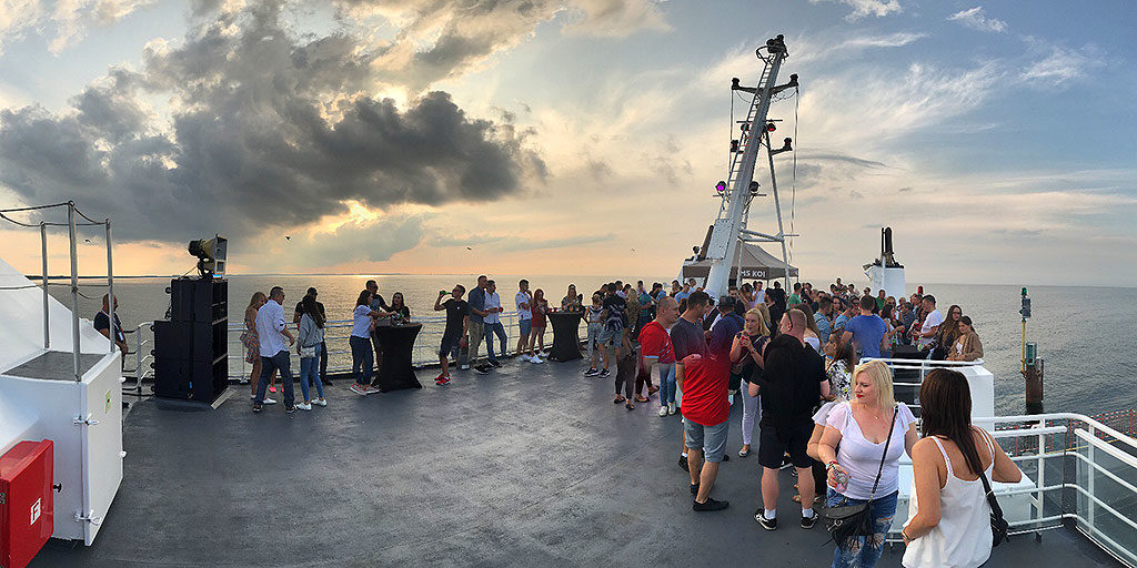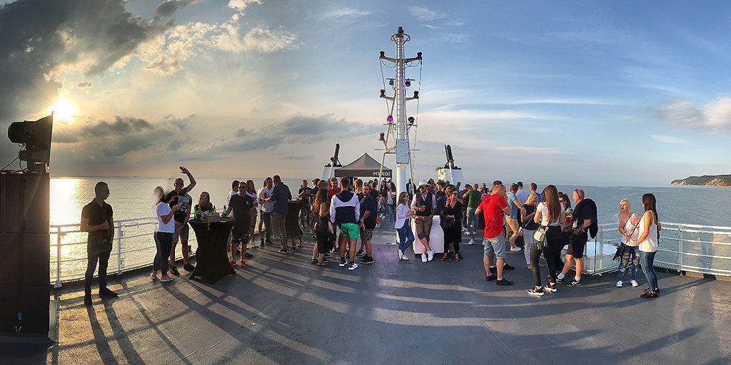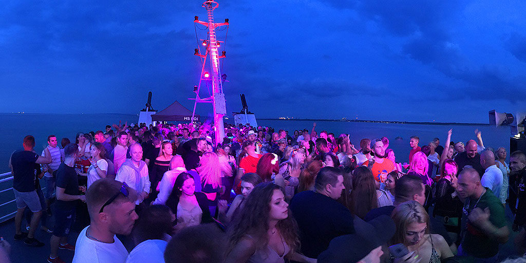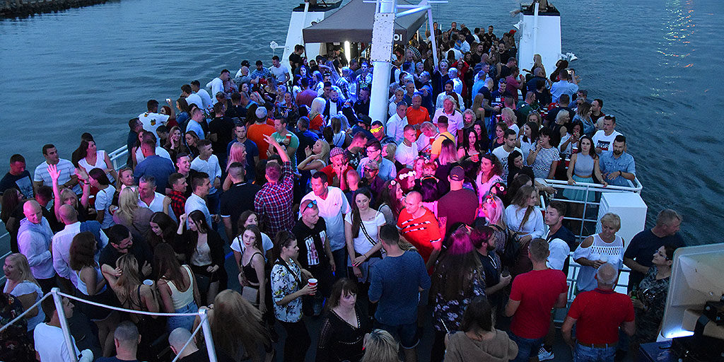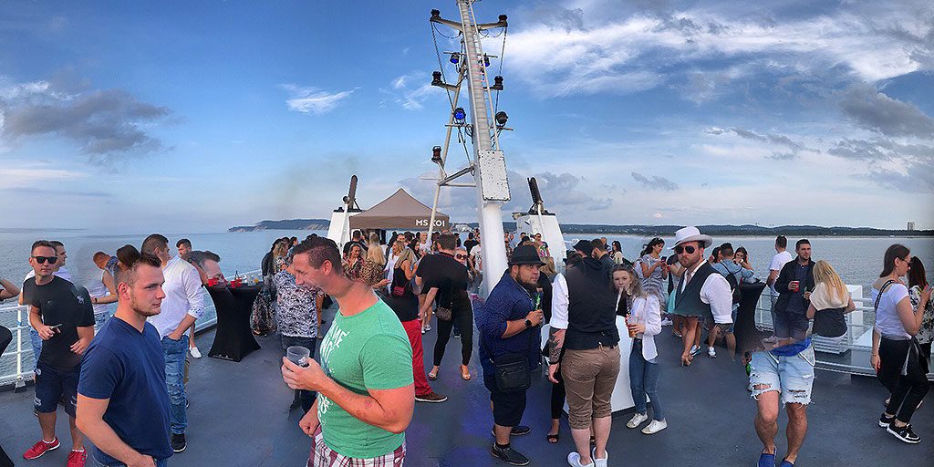 Około 500 pasażerów uczestniczyło we wtorkowej imprezie zorganizowanej na pokładzie statku eventowego m/v Koi pływającego po Zatoce Pomorskiej. DJ i cztery suto wypełnione bary zapewniły dobry nastrój. Przy okazji można było podziwiać zachód słońca chowającego się za horyzont. Statek wypłynął z Międzyzdrojów o godzinie 19 – tam zabrał pierwszych pasażerów. Kolejni weszli na pokład w Świnoujściu. Impreza na m/v trwała do 1 w nocy.