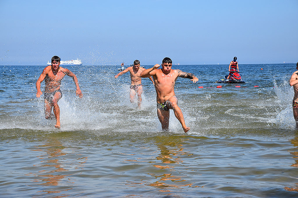 W sobotę na plaży przed Centrum Ratowników (przejście ul. Powstańców Śląskich) odbyły się zawody pływackie i pokazy ratownicze o “RESCUE SWIMMERS”