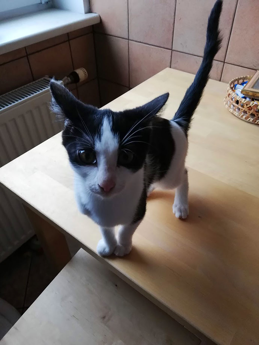 – Na początku sierpnia pojawiły się u mnie również 4 kociaki z miotu, który przyszedł na świat w ogródkach obok jednego z bloków. Ponieważ żyły na dworze również miały problemy z robakami i dodatkowo z pchłami. Leczenie się już zakończyło. A kociaki z połączonych miotów bardzo się polubiły – mówi pani Natalia. – Z tego miotu została Balbinka (wszystkie kociaki dostały imiona na literę B, nazwaliśmy ten miot Brygada B, kociaki urodziły się prawdopodobnie między 10 a 20 marca 2019) i pilnie szukają domu. – dodaje.