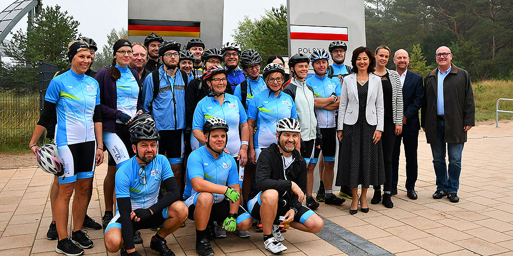 35 rowerzystów wyruszyło z transgranicznej promenady łączącej Świnoujście z Ahlbeck. Metę wyznaczyli sobie w Zgorzelcu. Jadą wzdłuż naszej zachodniej granicy, a po drodze promują wspólne polsko – niemieckie transgraniczne inwestycje.
