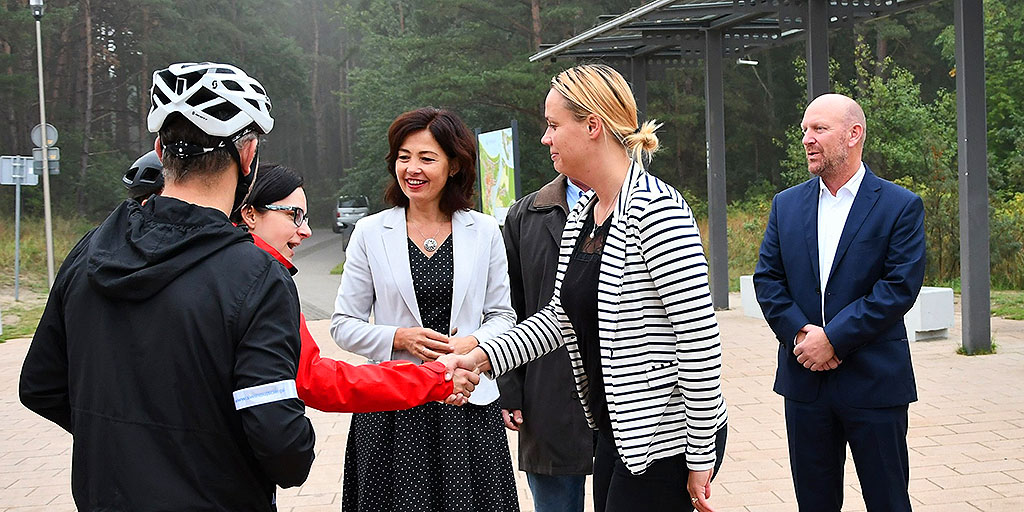 Wczoraj w miejscu gdzie polska część transgranicznej promenady łączy się z niemiecką rowerzystów pożegnały Zastępca Prezydenta Miasta Świnoujście Barbara Michalska oraz Burmistrz Gminy Heringsdorf  Laura Isabelle Marisken.