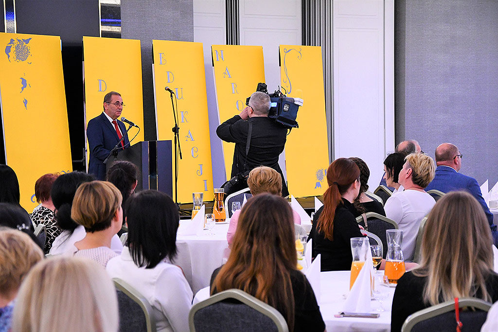 – Dziękuję za Waszą niełatwą pracę. Za cierpliwość i wyrozumiałość dla uczniów. Za zrozumienie i pomoc w przejściu przez reformę oświaty – mówił dziś z okazji Dnia Edukacji Narodowej Prezydent Świnoujścia Janusz Żmurkiewicz do kilkuset świnoujskich nauczycieli, którzy spotkali się w Sali Hotelu Radisson Blu. – Macie wielką moc, bo przecież Wy nie tylko przekazujecie wiedzę młodym pokoleniom, ale także macie wpływ na kształtowanie osobowości tych młodych ludzi, Polaków.